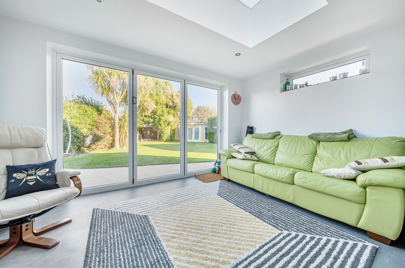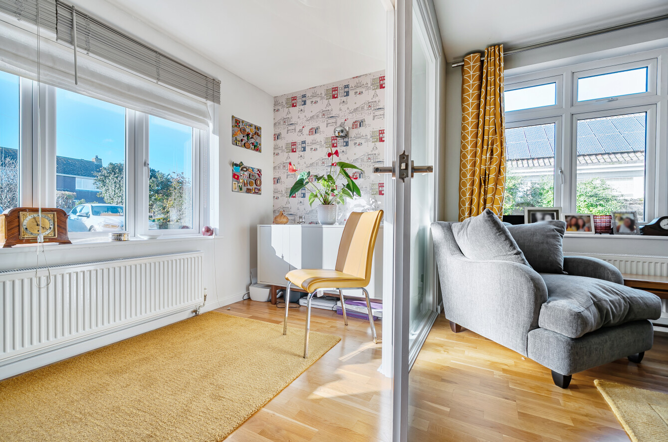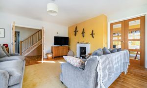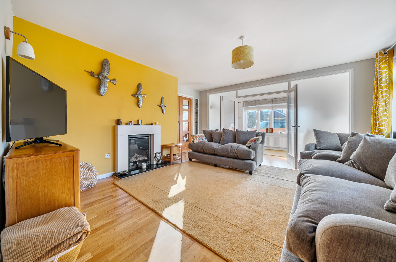 Upon entering, a welcoming porch opens into the inner hall, with the sitting room positioned to the front of the house. From here, double doors lead into an extension which provides an ideal space for those working from home or a quiet area for reading and relaxation.