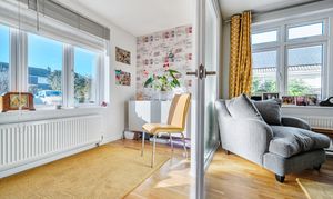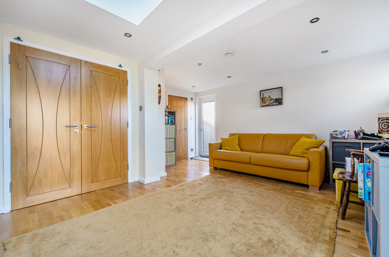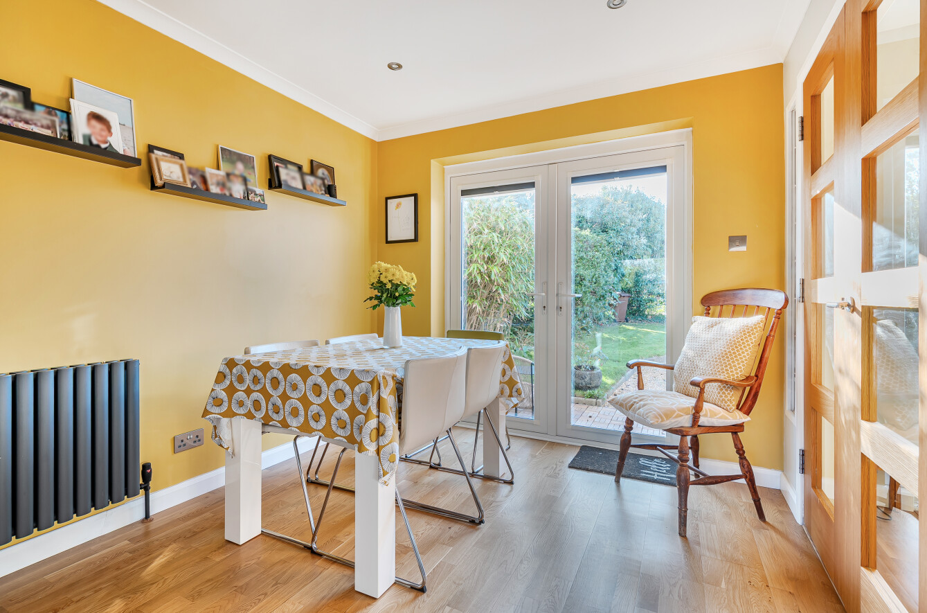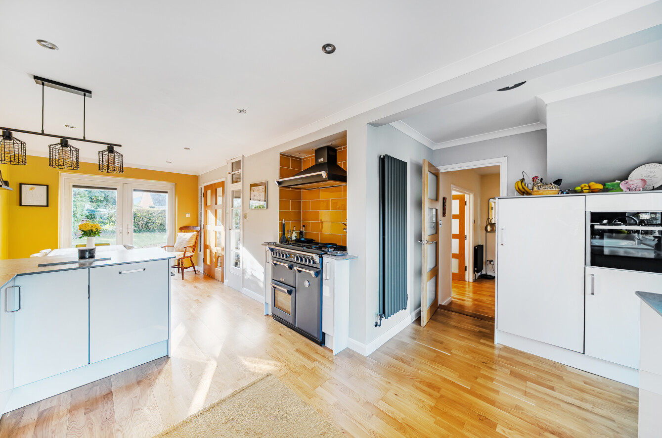 Upon entering, a welcoming porch opens into the inner hall, with the sitting room positioned to the front of the house. From here, double doors lead into an extension which provides an ideal space for those working from home or a quiet area for reading and relaxation.