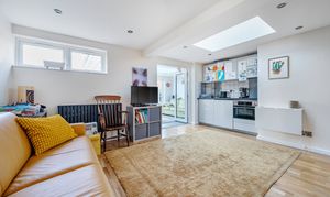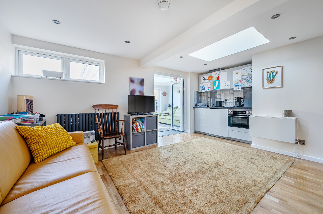 The spacious kitchen/dining room stretches the full depth of the property and is fitted with an excellent range of cupboards and integrated appliances. A useful utility room sits just off the kitchen and provides access to the garden. A ground floor shower room is perfect for returning from the beach.