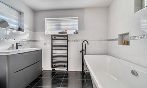On the first floor, there are three good-sized bedrooms. Bedroom one benefits from a walk-in wardrobe and an en-suite shower room, while a family bathroom serves the remaining bedrooms.
