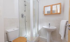 Inside, the entrance hallway provides access to all rooms, along with two useful storage cupboards. Both bedrooms are generously sized doubles, with the main bedroom benefiting from fitted wardrobes and a private en-suite shower room.