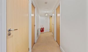 As you approach the building, you will notice the secure telecom entry system. Once inside, you are welcomed by beautifully maintained communal areas, including a stunning water feature that creates a peaceful, tranquil setting. On the first floor, where the flat is located, a second security door leads directly to the apartment.