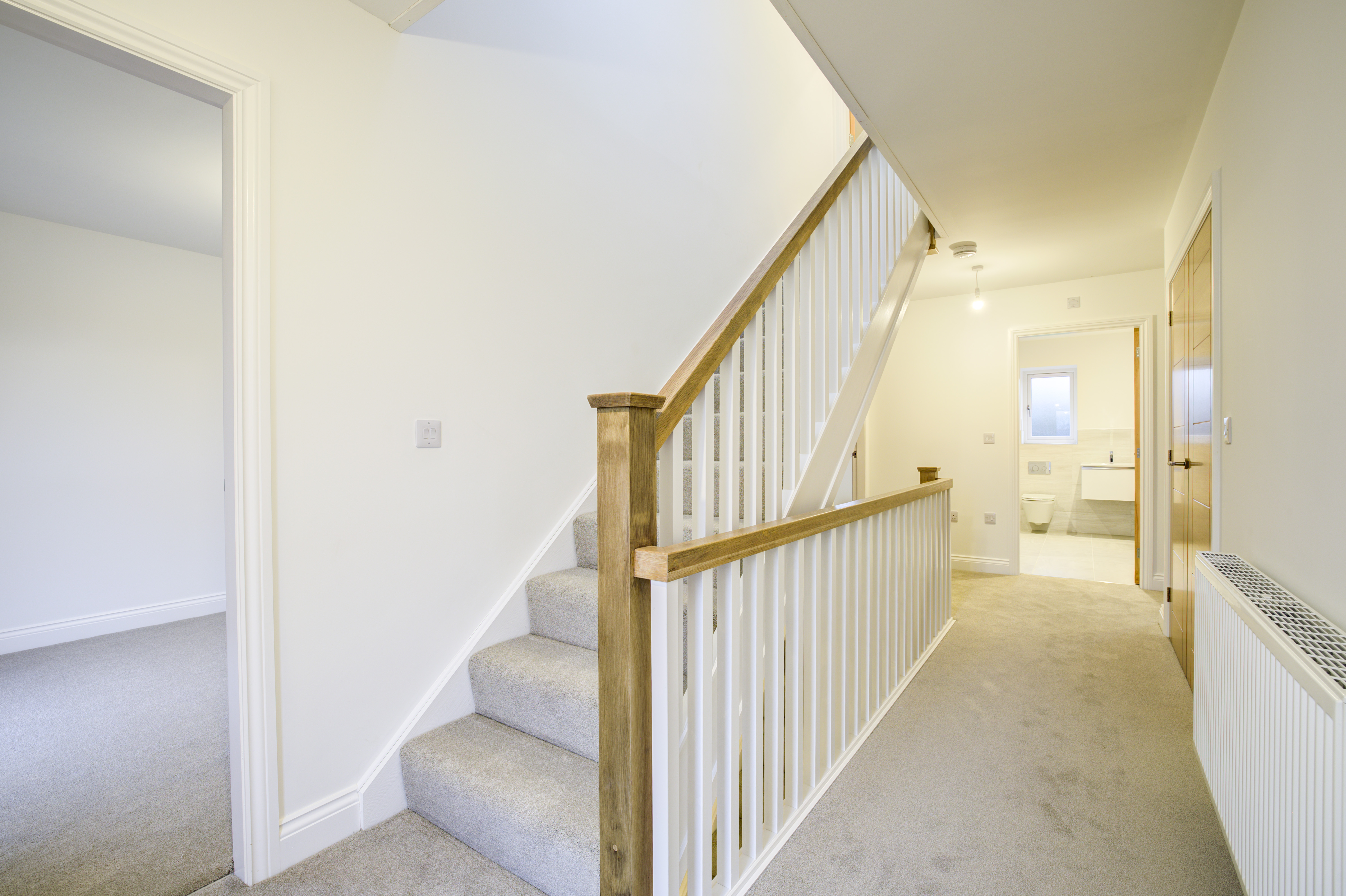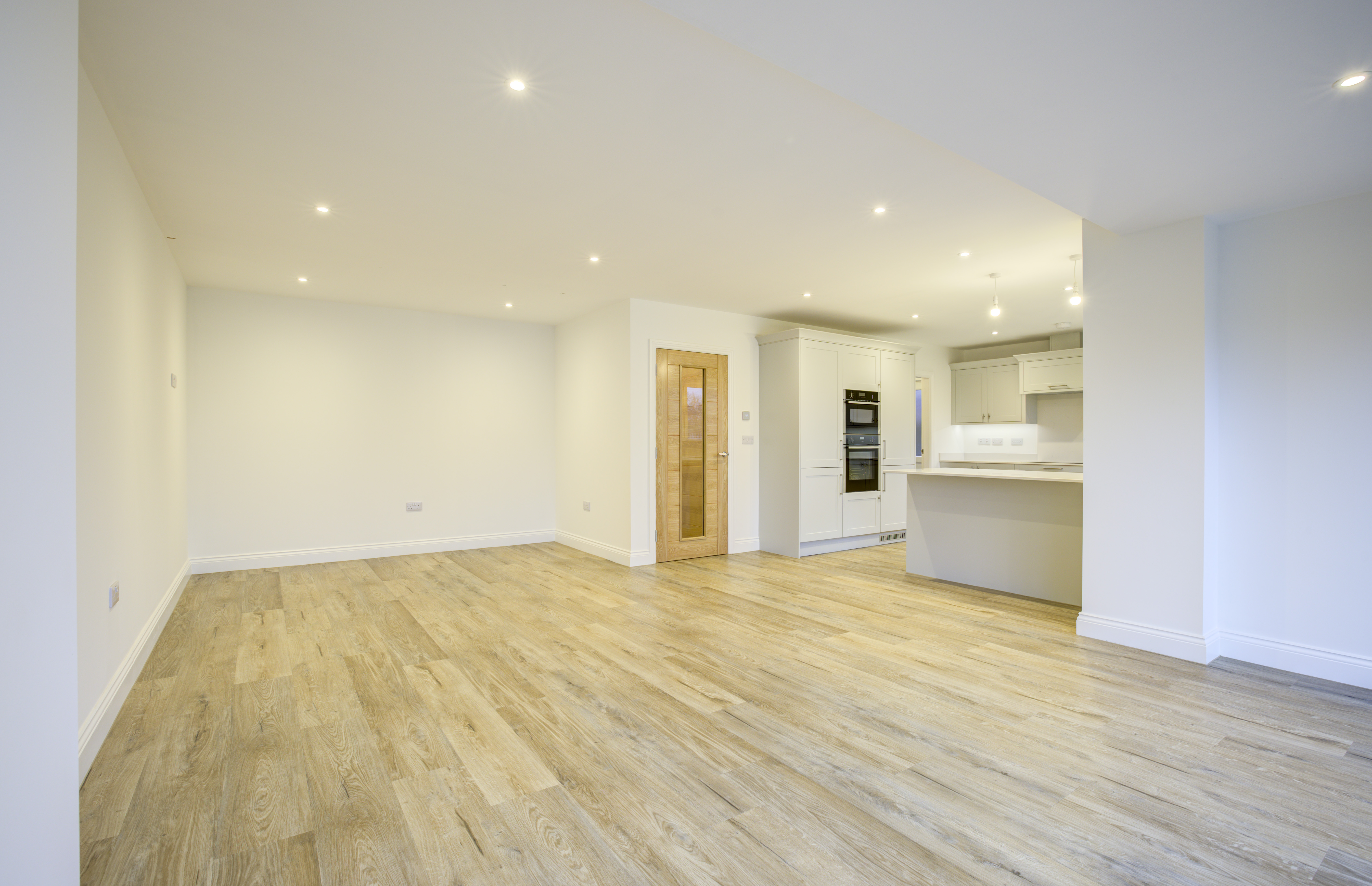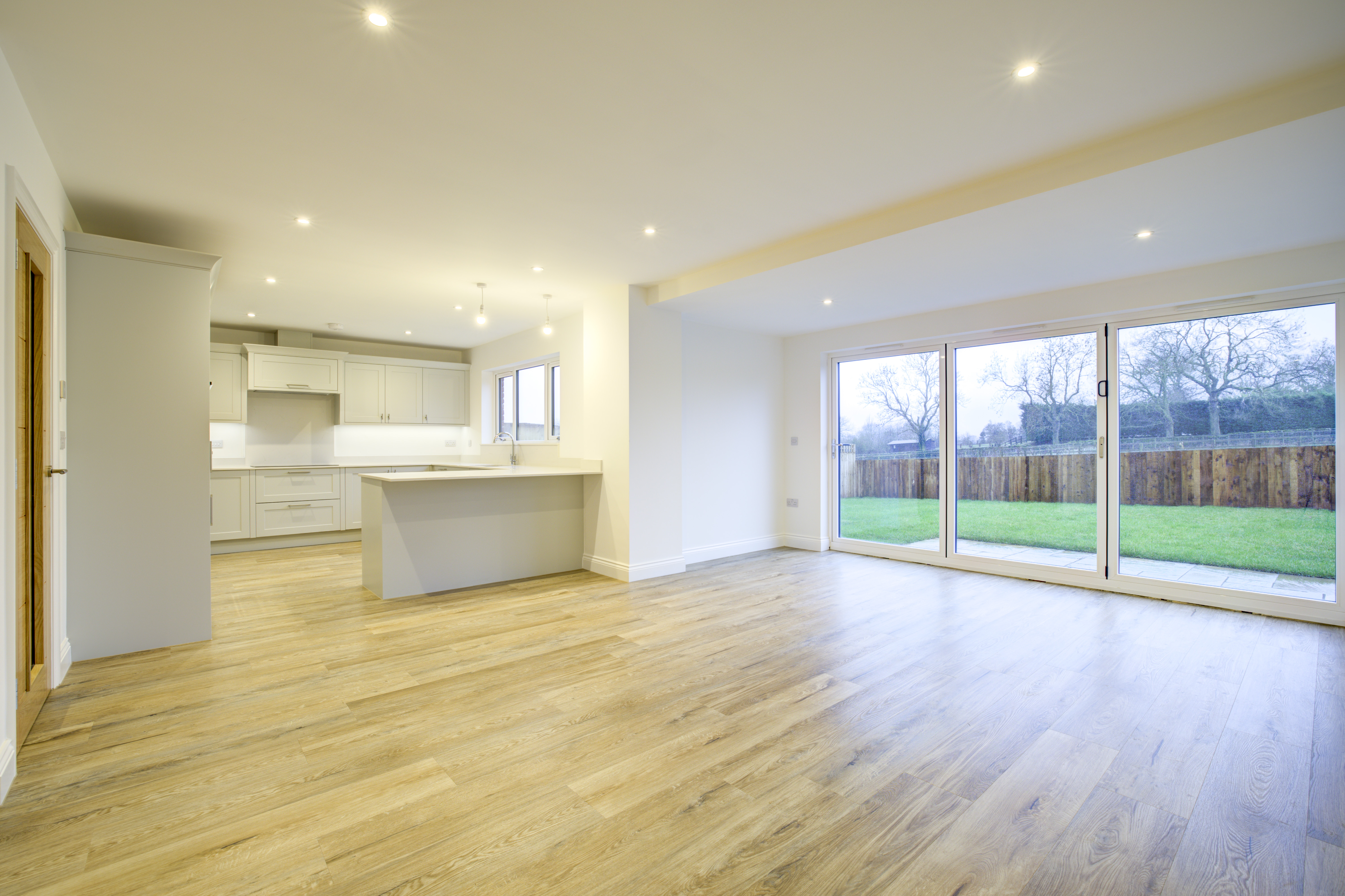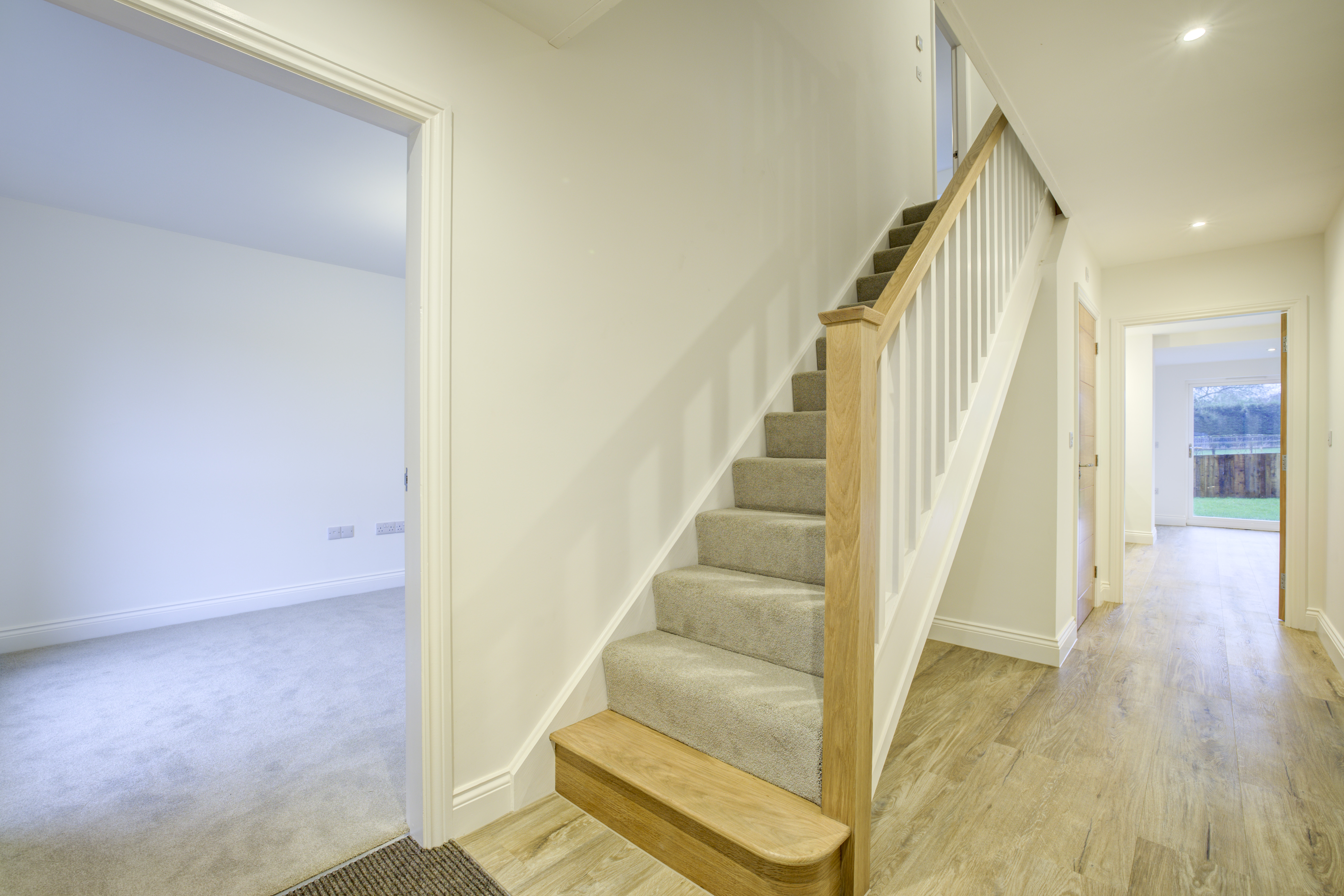 Forric Specification: Up to £12,000 of premium features included as standard: full flooring package, quartz worktops with splashbacks, NEFF appliances, oak doors throughout, underfloor heating, and landscaped turfed gardens.