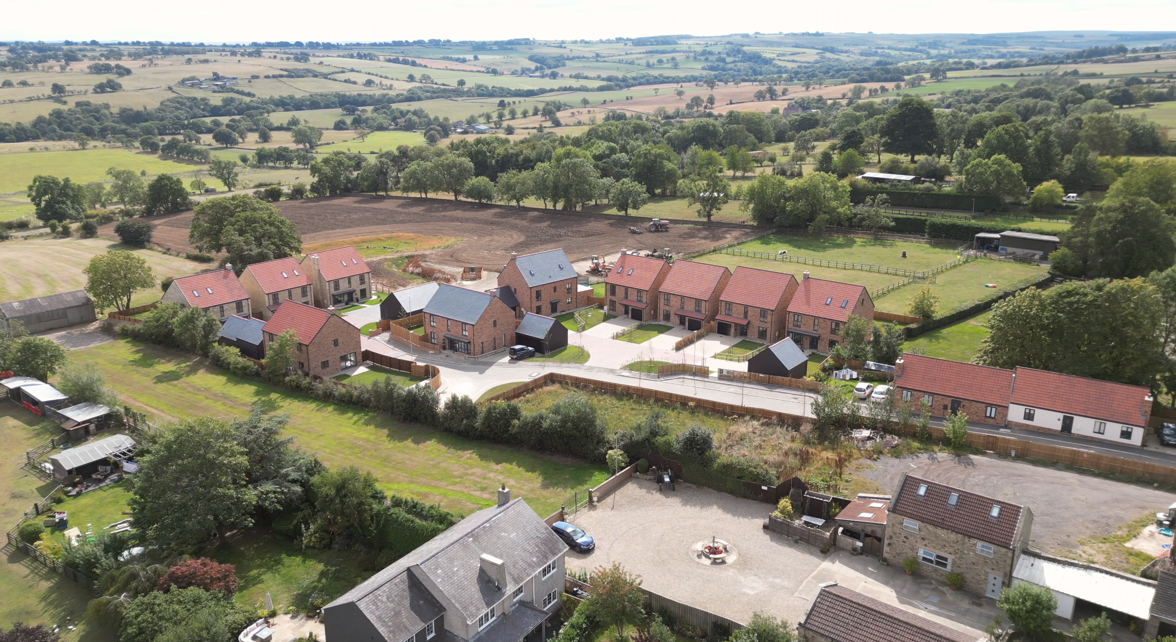 Hamsterley Pastures is an exclusive development of twelve homes in the heart of County Durham. Designed to complement its rural surroundings while offering modern, energy-efficient living, the development is thoughtfully arranged into North and South Courtyards. The layout maximises privacy while fostering a sense of community. With nine unique house types, each home contributes to a distinctive street scene and sense of character. Every property benefits from a private garage, driveway, and a generously sized, fenced garden. Surrounded by open countryside, residents can step out of their front door and straight onto scenic walking trails.