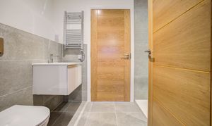 Ground Floor: The heart of the home is the spacious open-plan kitchen and dining area, complete with a breakfast bar, integrated NEFF appliances, and luxurious solid quartz worktops. Aluminium bi-fold doors seamlessly open onto the private turfed garden, creating a perfect indoor-outdoor flow. Underfloor heating runs throughout for added comfort. A separate utility room provides garden access, while the generous living room offers a perfect space for relaxation. A WC and ample storage add further convenience.