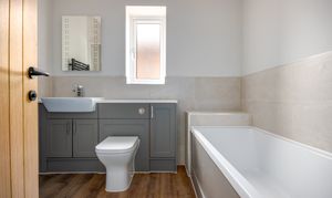 A separate lounge and a family room or study add flexibility downstairs, while underfloor heating keeps things cosy. Upstairs, the main bedroom includes a spacious en-suite with both bath and walk-in shower, and three further double bedrooms include a second with its own en-suite. All bathrooms are finished with stylish fittings, ceramic tiling, and backlit mirrors.