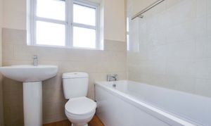 With double glazed windows to the rear elevation, bath with shower over and shower screen, low-level WC, wash hand basin, part tiled walls, radiator.