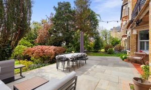 A three double bedroom ground-floor flat with its own private entrance, direct access onto a south-facing stone patio, and a view across beautifully maintained gardens. At 1,458 sq ft, the size alone exceeds many local houses, and the garden access puts it in a different category to any of the other local flats. Offered with a long lease of 145 years and with a very reasonable service charge of £1260 per annum, with peppercorn ground rent, this stunning home is a truly remarkable package. Having been recently refurbished, it boasts new double-glazed sash windows, a new boiler system as well as flooring, kitchen & bathroom, and electrics.