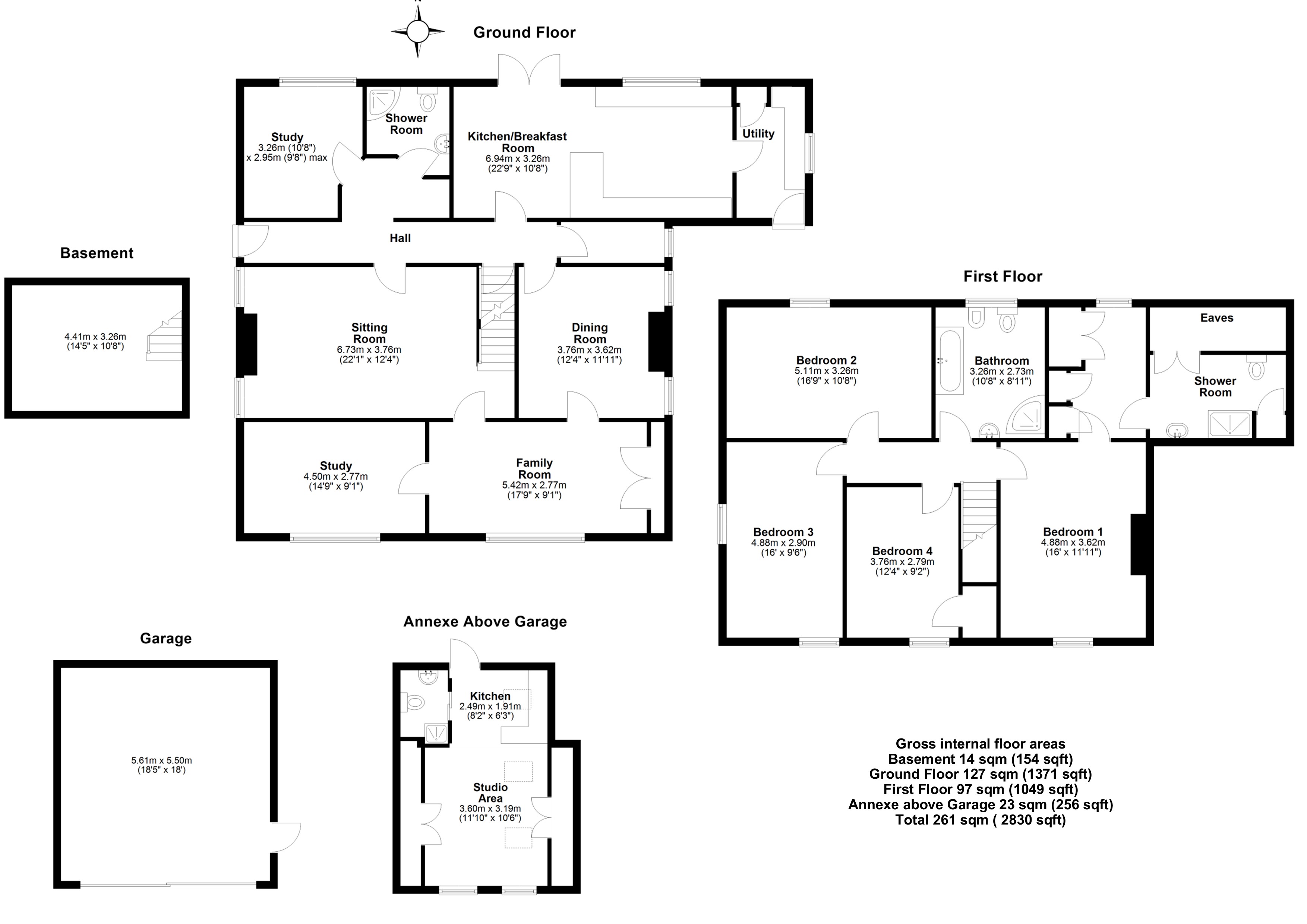 - Self-contained annexe above the double garage with studio space, kitchenette and shower room