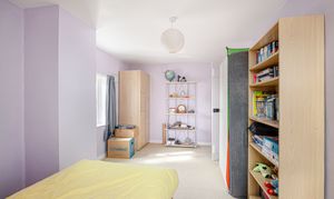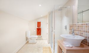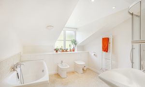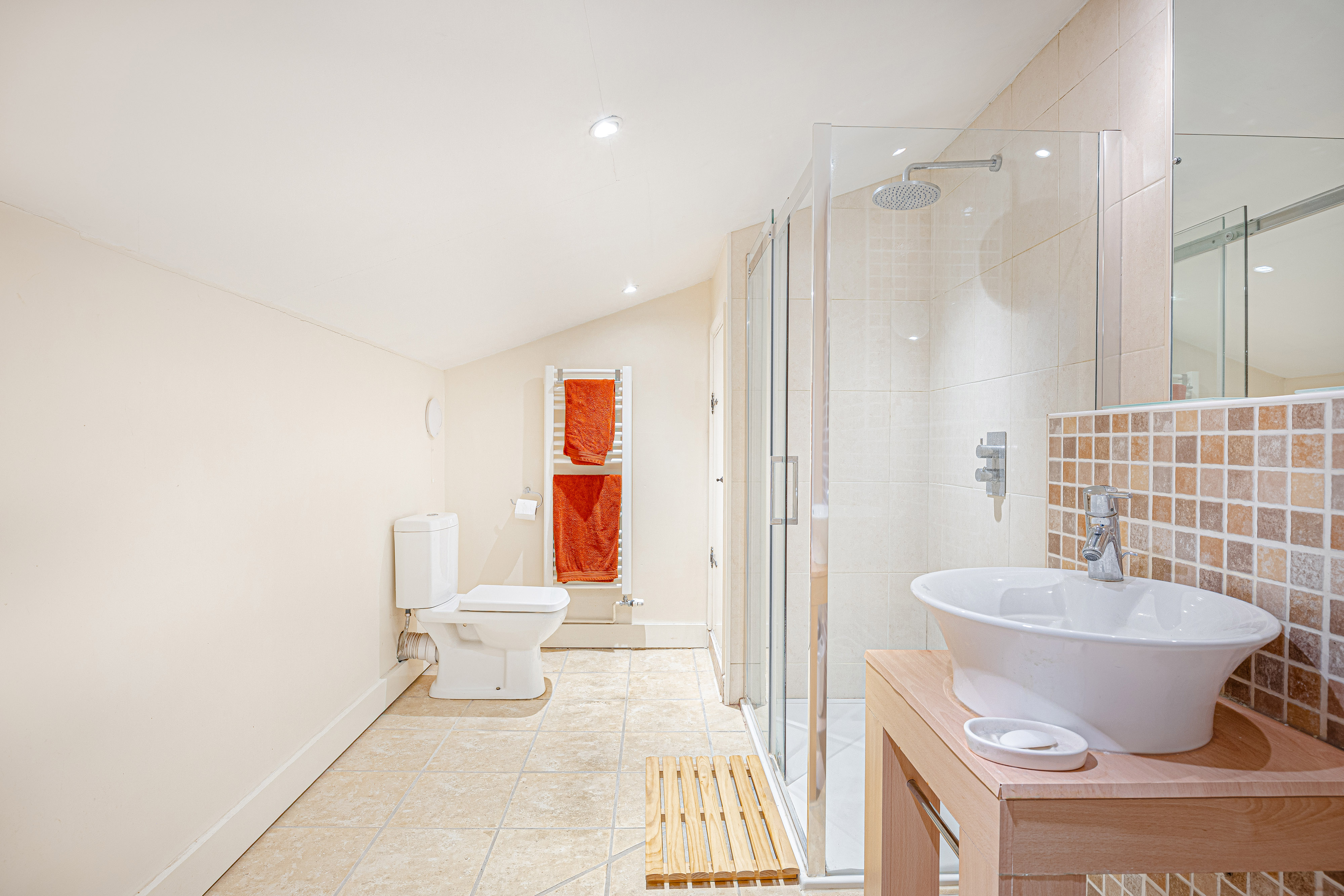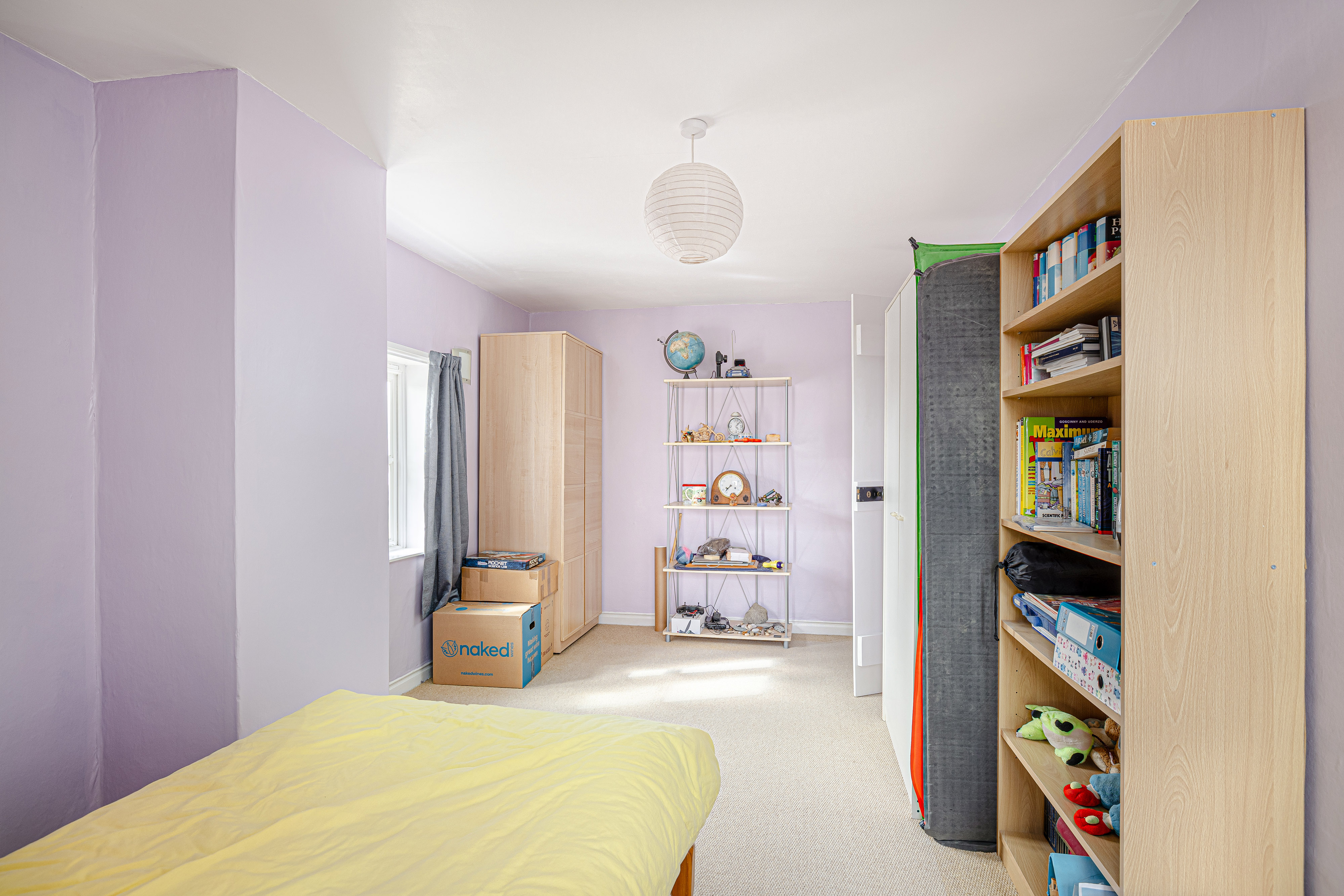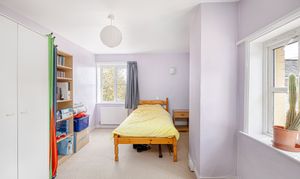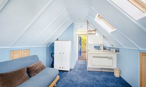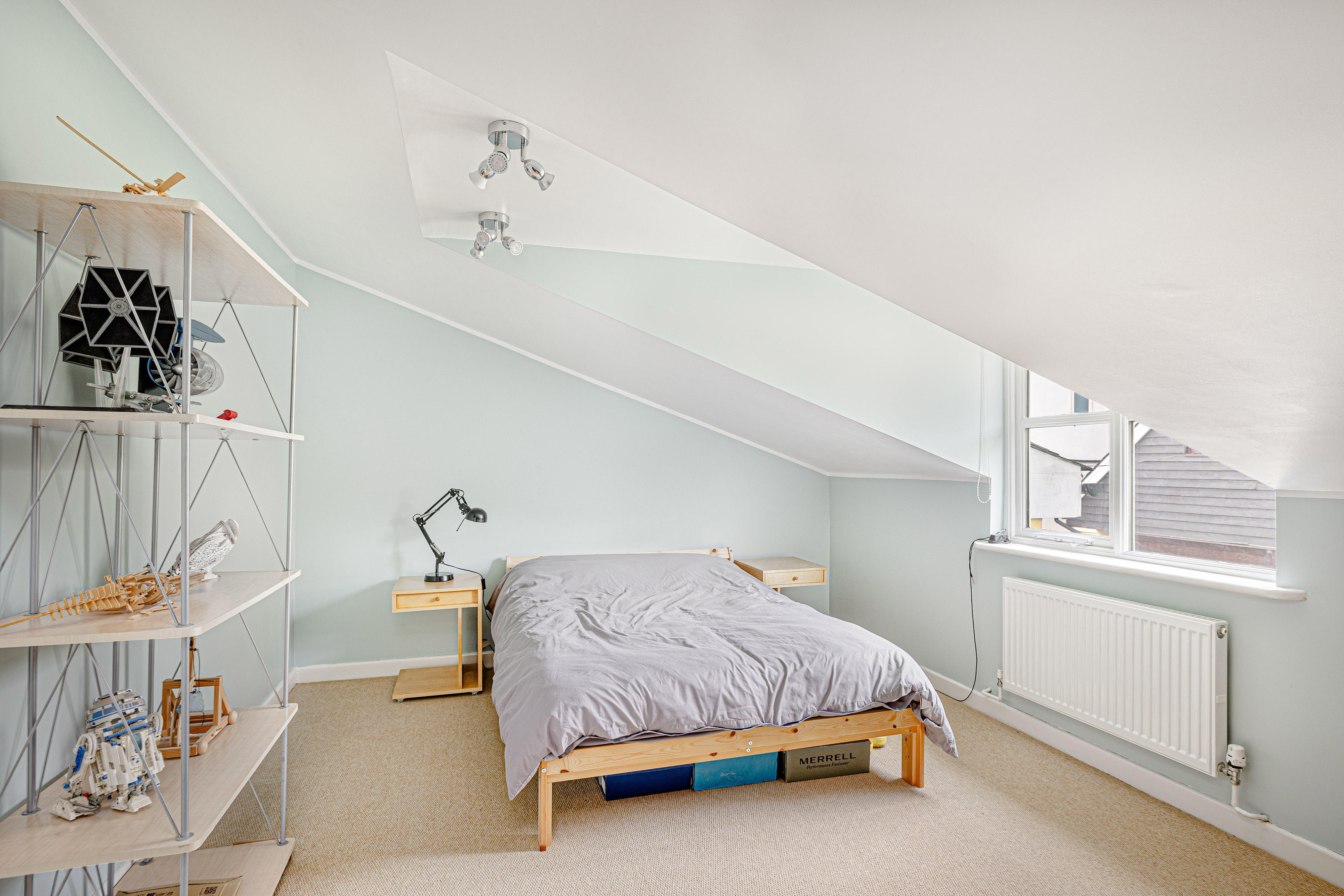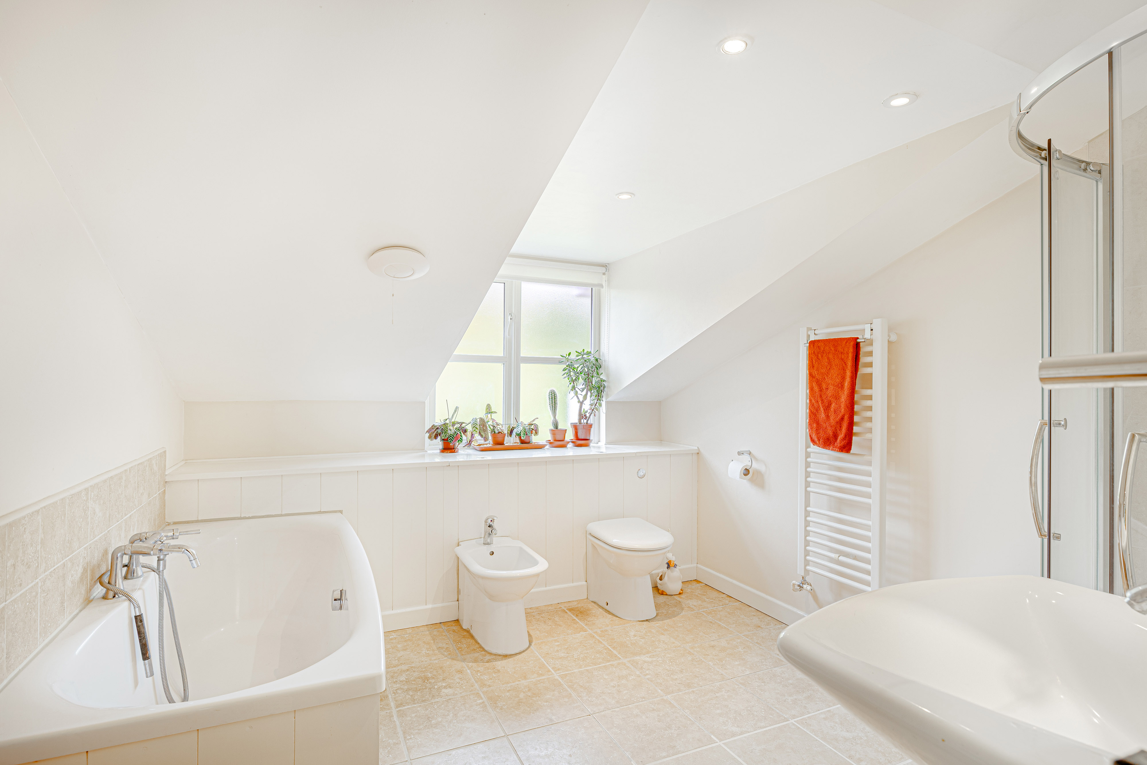 On the first floor are four well-proportioned bedrooms, all enjoying a lovely sense of character. The principal bedroom is especially impressive, with vaulted ceiling detail and exposed timbers, together with an adjoining dressing area offering substantial cupboard space, and a separate shower room with a useful eaves storage cupboard, which gives the principal suite a distinctive and highly practical feel. The remaining bedrooms are all comfortable in size and are served by a spacious family bathroom, ensuring the house is well equipped for busy family life.
