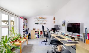 To the front, a large driveway provides extensive parking and access to the detached double garage, which benefits from mains power. There is also a Pod Point electric car charger on the drive, adding further practicality for modern living. Above the garage, the self-contained annexe is a superb addition, comprising a bright studio/living space with a kitchenette and a shower room. Ideal for guests, dependent relatives or independent working, it adds another layer of appeal to this already impressive home.
