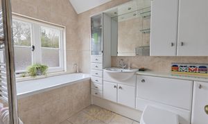- Master bedroom with large walk-in wardrobe, scope for en-suite STPP, Three further double bedrooms, shower room – Family bathroom