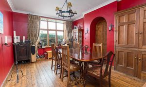 The ground floor offers a superb balance of formal and informal living spaces. A beautifully proportioned double-aspect living room features high ceilings, abundant natural light, and an open wood burning fireplace - ideal for both entertaining and relaxation. The formal dining room provides an impressive setting for hosting, comfortably accommodating large gatherings. A versatile study and family room/snug adds further flexibility.