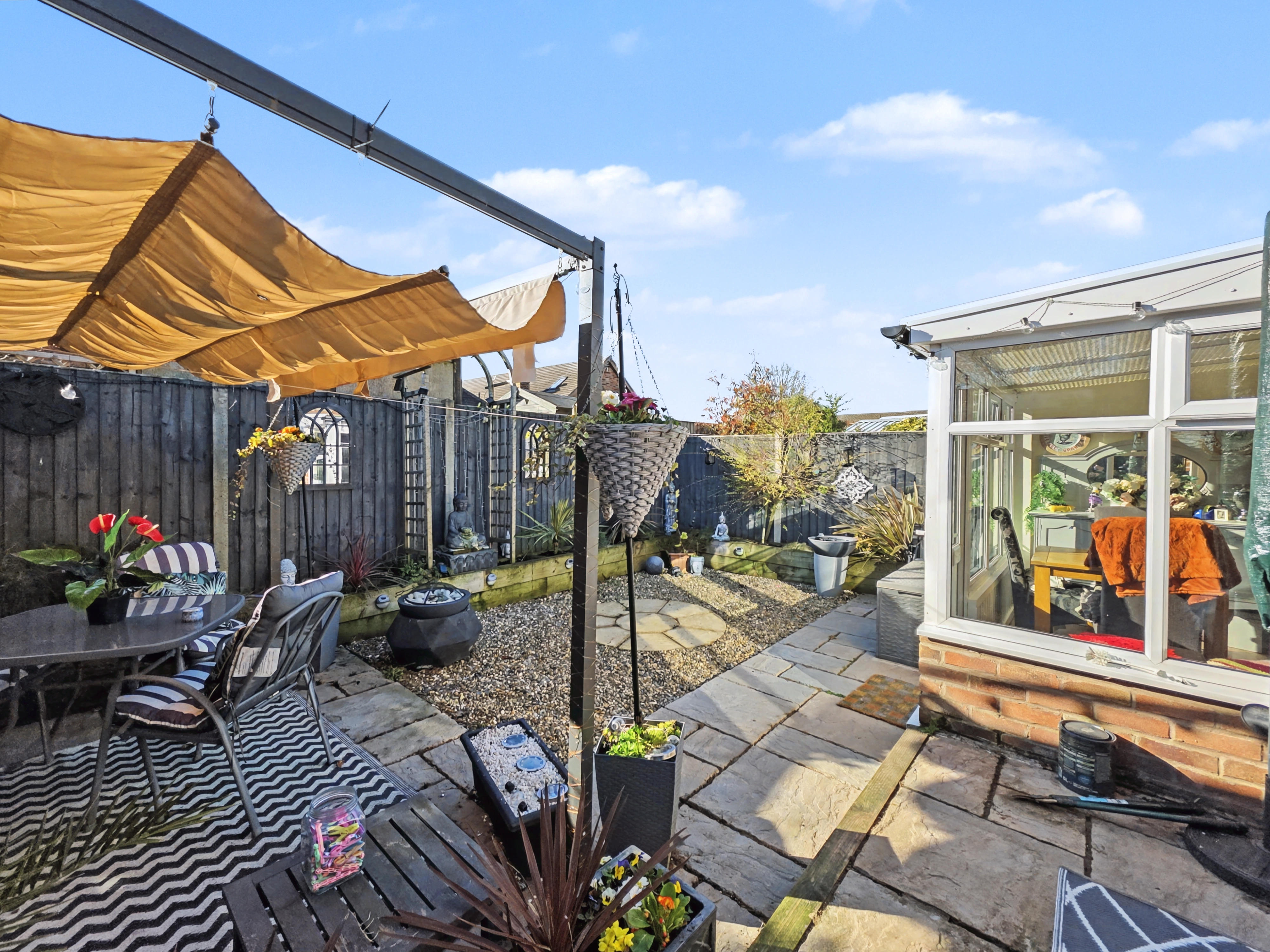 Outdoors, the property excels with a beautifully landscaped rear garden, featuring a gravel and stone patio, a stylish pergola with hanging plants, and multiple seating and dining areas - perfect for alfresco entertaining or quiet relaxation. The covered car port area offers either a sheltered retreat, or additional off-road parking.