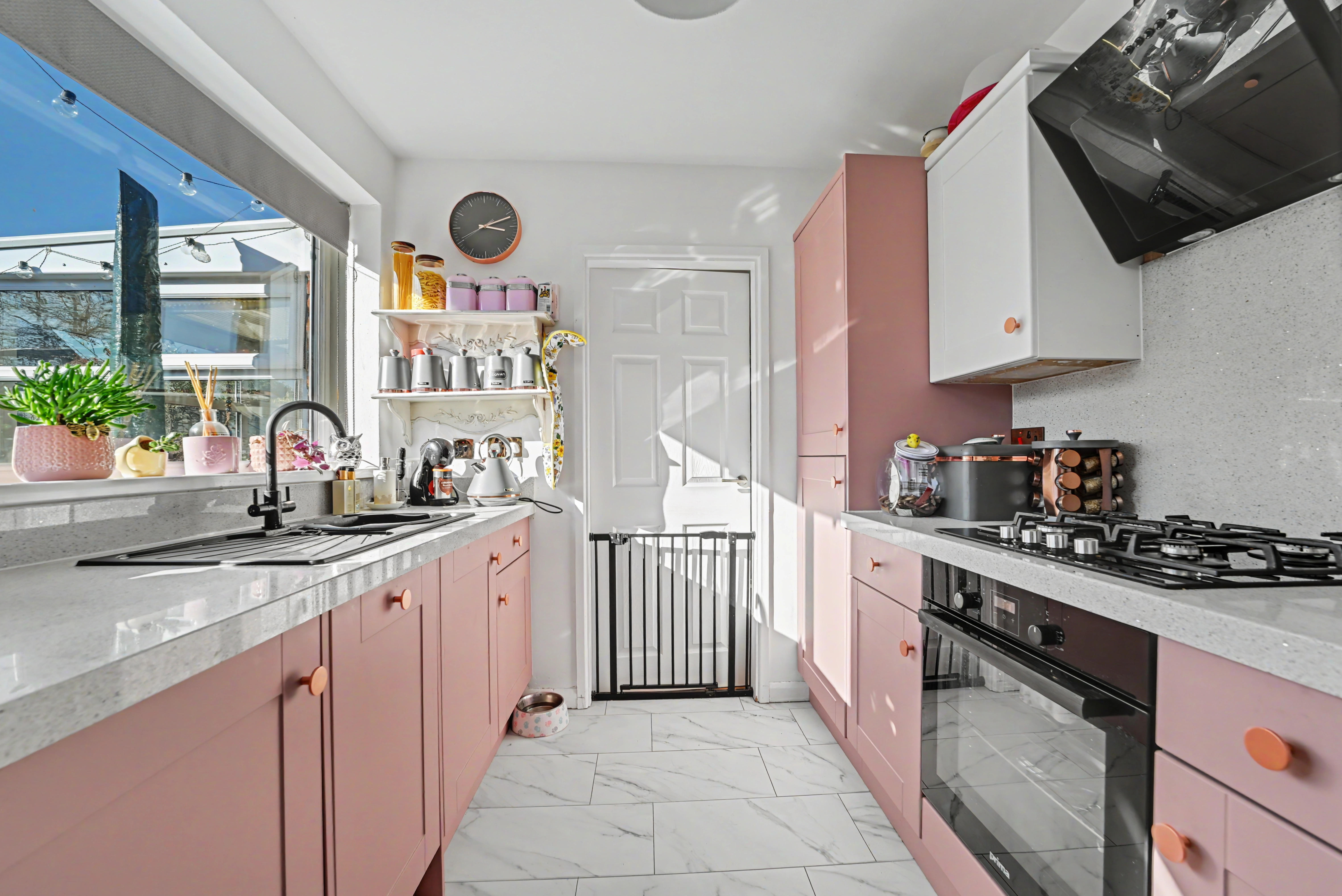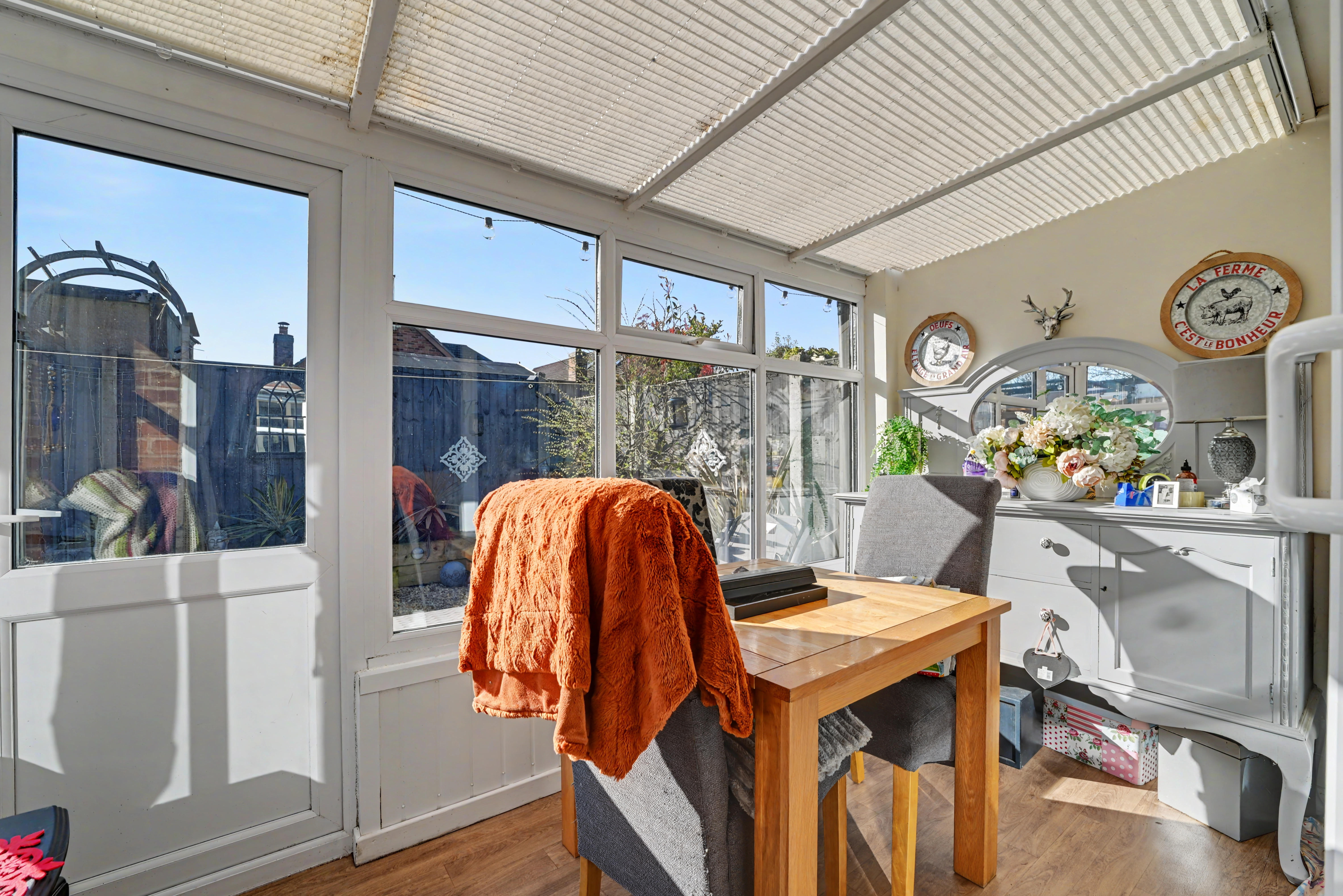 This beautifully presented two-bedroom semi-detached bungalow offers a harmonious blend of stylish modern living and cosy comfort, ideal for those seeking a welcoming home with exceptional indoor and outdoor spaces. The property features a generous reception room with warm wood flooring, eye-catching feature wallpaper, and large windows that fill the space with natural light. A bright conservatory - accessed directly from the living area - serves as an additional space for relaxation or entertaining, seamlessly connecting to the beautifully landscaped garden.