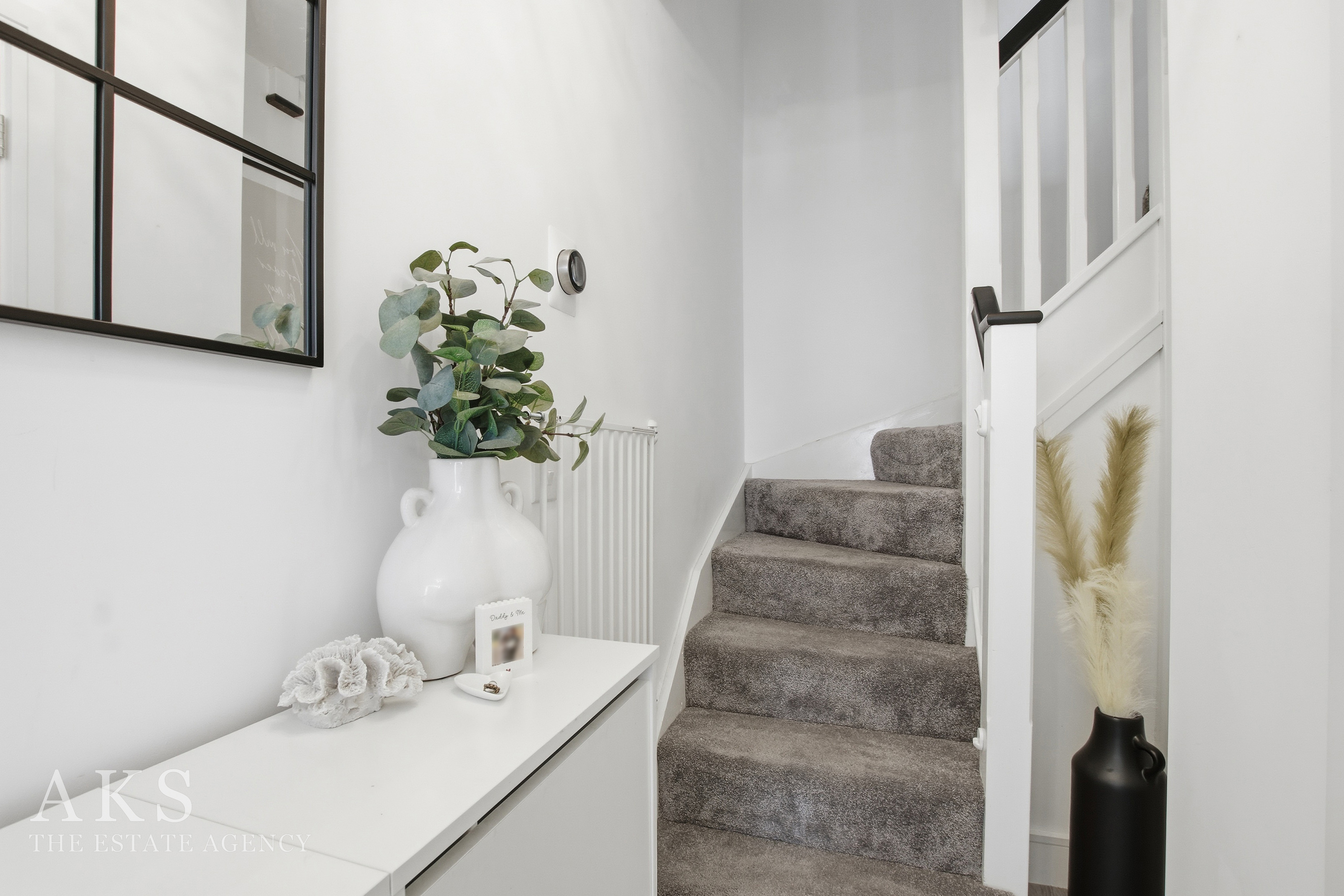 The low‑maintenance garden complements this home perfectly. With busy lives, gardening can sometimes feel like a chore, but this outdoor space is designed to be enjoyed all year round. An artificial lawn leads seamlessly into a decked seating area, creating an inviting spot to relax or entertain. The current owners have also added an additional gate from the driveway, making it wonderfully convenient when bringing in shopping or unloading the car”.