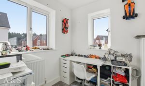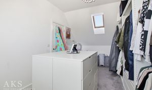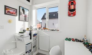 The middle floor is home to the main bedroom, complete with built‑in wardrobe, Juliet balcony and an en‑suite shower room. This level also offers a second spacious bedroom with mirrored fitted wardrobes, a dedicated office, and a modern bathroom with a three‑piece suite. The top floor feels particularly special. A sun tunnel brings natural light into the landing, creating a bright and airy feel. Two generous double bedrooms sit on this level, each with Velux windows to one side and additional windows opposite to maximise daylight. A third bathroom completes the floor, a fantastic feature for busy family life. Altogether, this level feels like a perfect self‑contained retreat, ideal for relaxing and enjoying some quiet downtime.