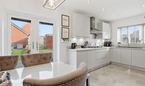 Inside, the hallway is bright and welcoming, the perfect space to take off your coats and shoes, with plenty of space to store them too. To the left sits the generous living room, spanning the full width of the house. I love how the three windows in here flood this room with natural light, creating a warm and inviting atmosphere. On the opposite side of the ground floor is the sleek kitchen‑diner, with high‑gloss units and integrated appliances creating a modern, streamlined look. The understairs cupboard is a great space for extra storage, and the patio doors open directly onto the garden, making this a brilliant space for everyday living and entertaining. A downstairs WC adds further convenience.