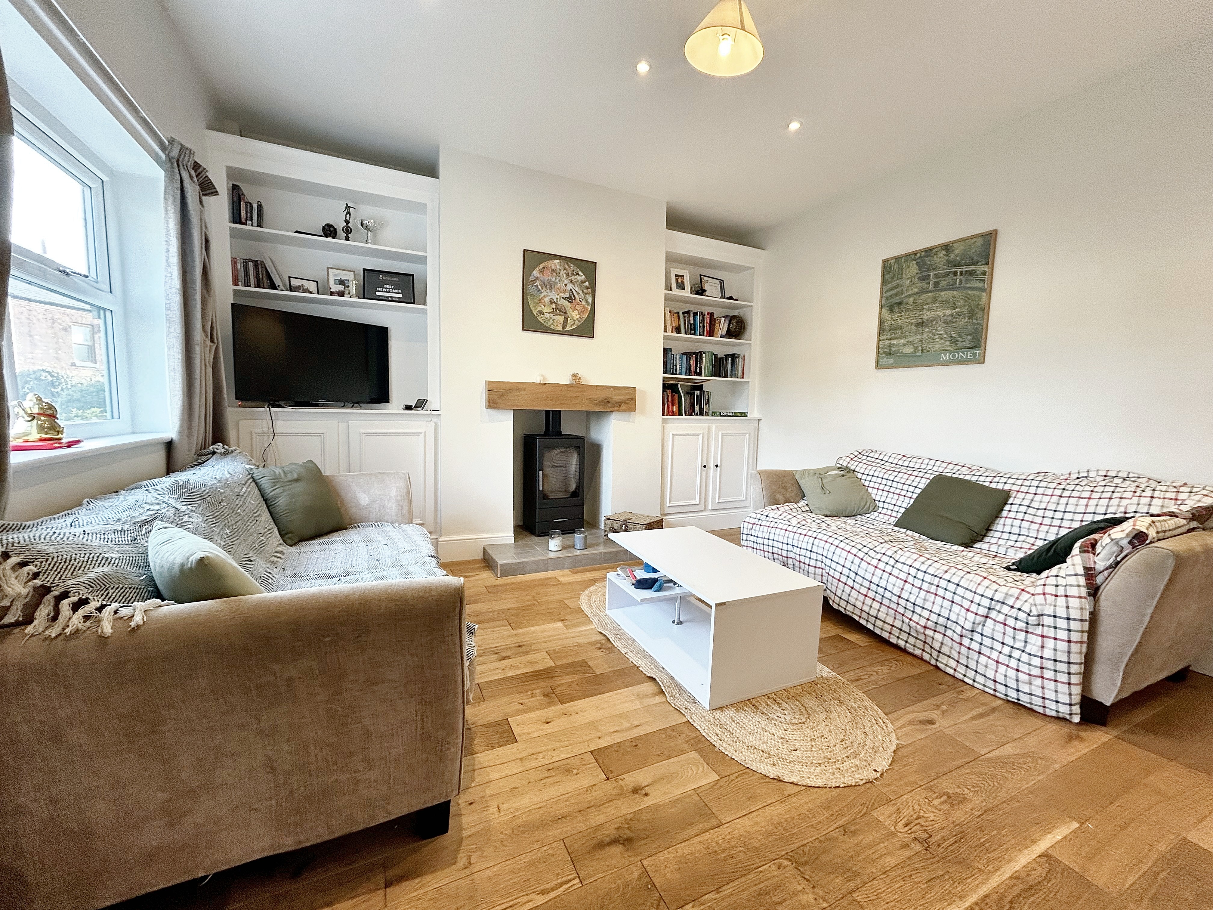 Window to front elevation. Log burning fireplace. Integrated stoage. Stairs to First Floor Landing.