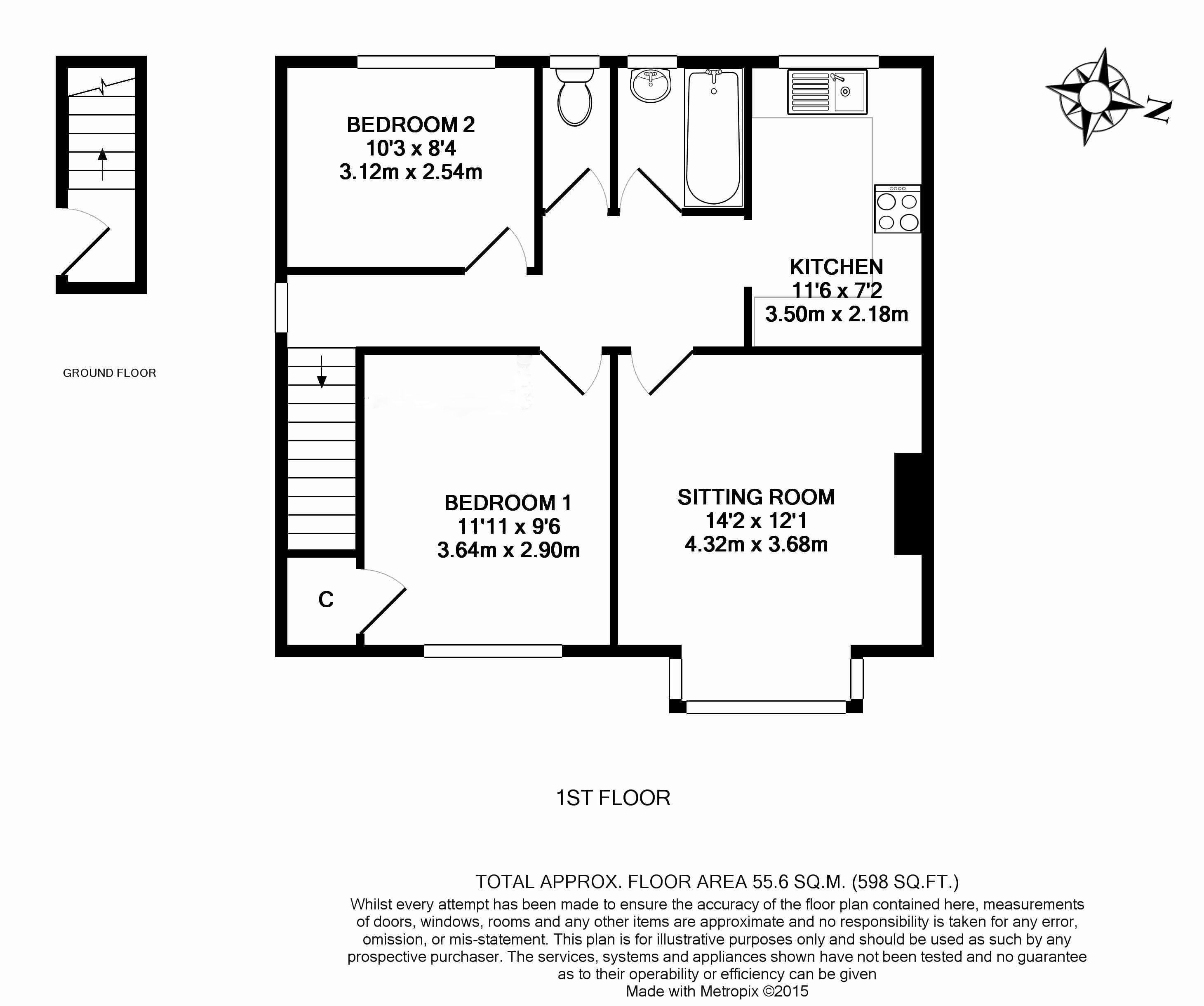 The main bedroom is a good size with a large integrated storage cupboard. The second bedroom is a further double room overlooking the rear gardens.