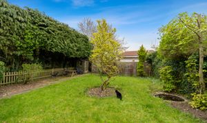 The garden is accessed along a pathway by the side of the house, mainly laid to lawn, and offers great space for enjoying the summer months.
