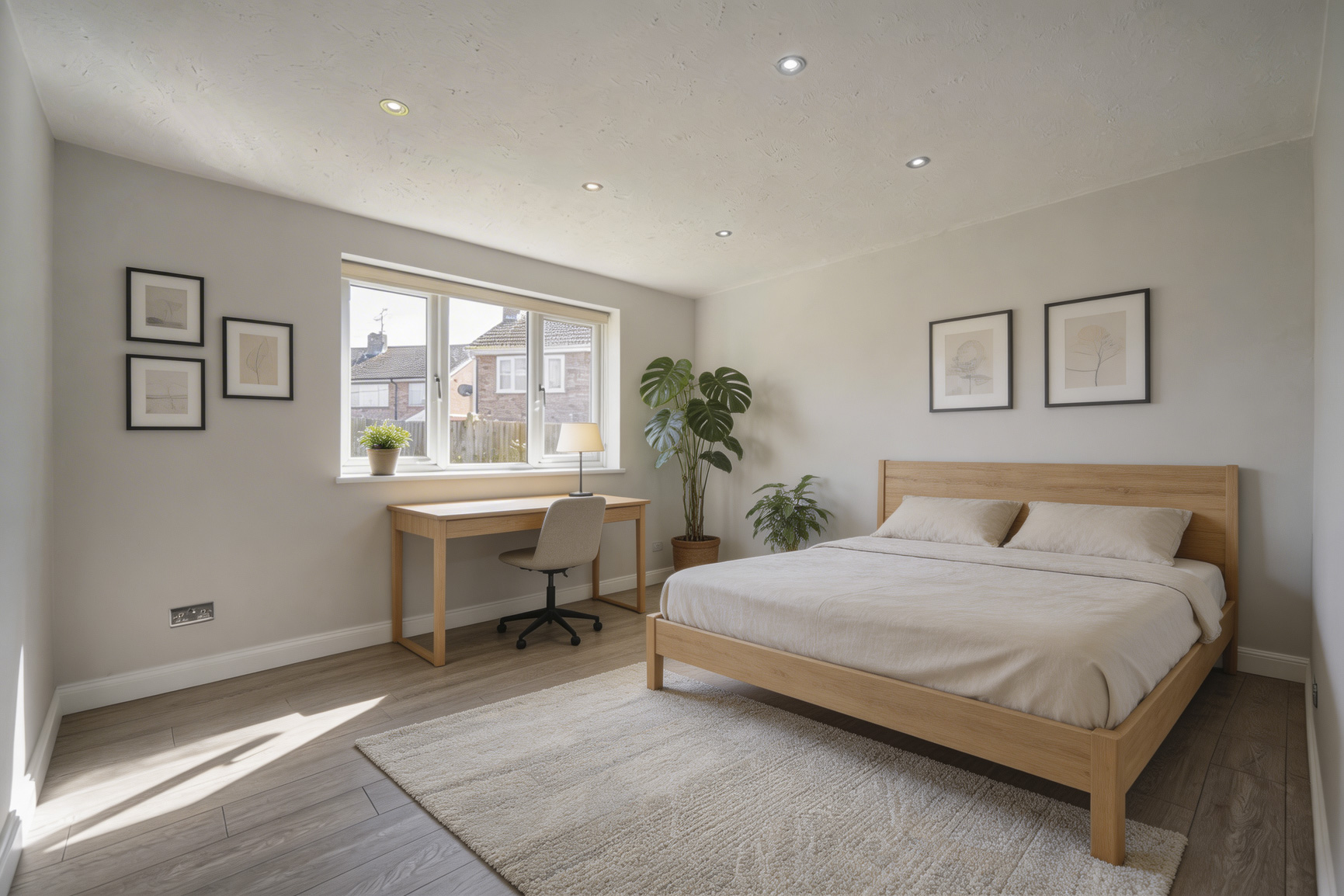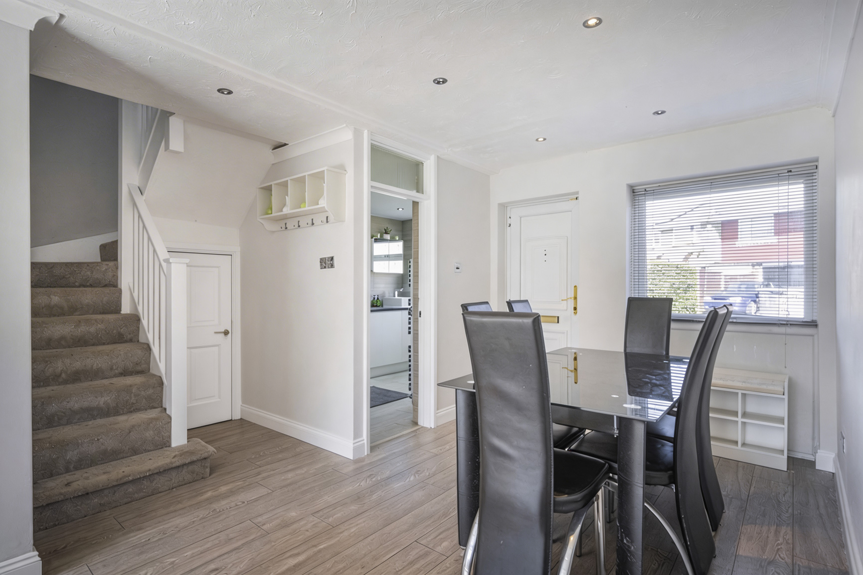 The journey through this unique residence begins in the welcoming entrance, which opens directly into a beautifully fluid living and dining sanctuary. Grounded by wide wood-effect flooring and illuminated by contemporary inset spotlights, the space has been thoughtfully designed to balance the vibrant energy of a family with the grounded tranquillity of Zen living.