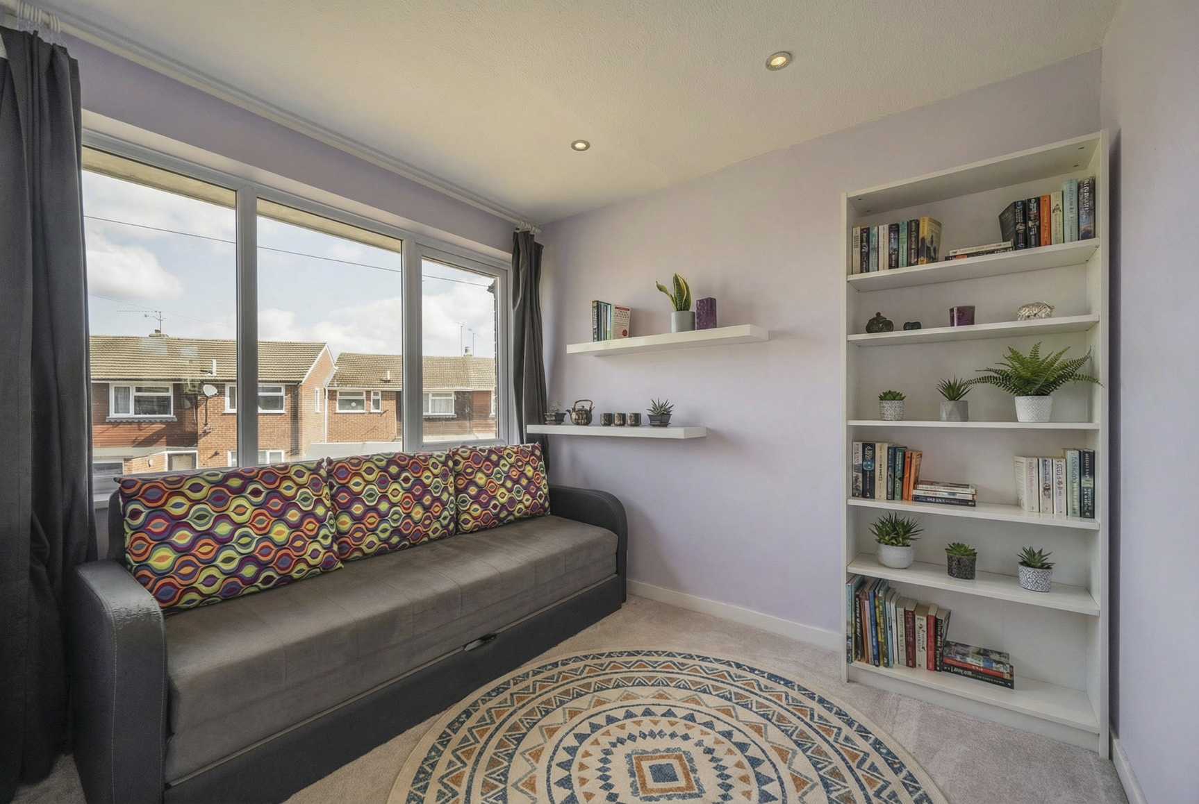 The second bedroom continues the home’s narrative, dressed in a delicate pale mauve, the room radiates a gentle, high-vibration energy.
