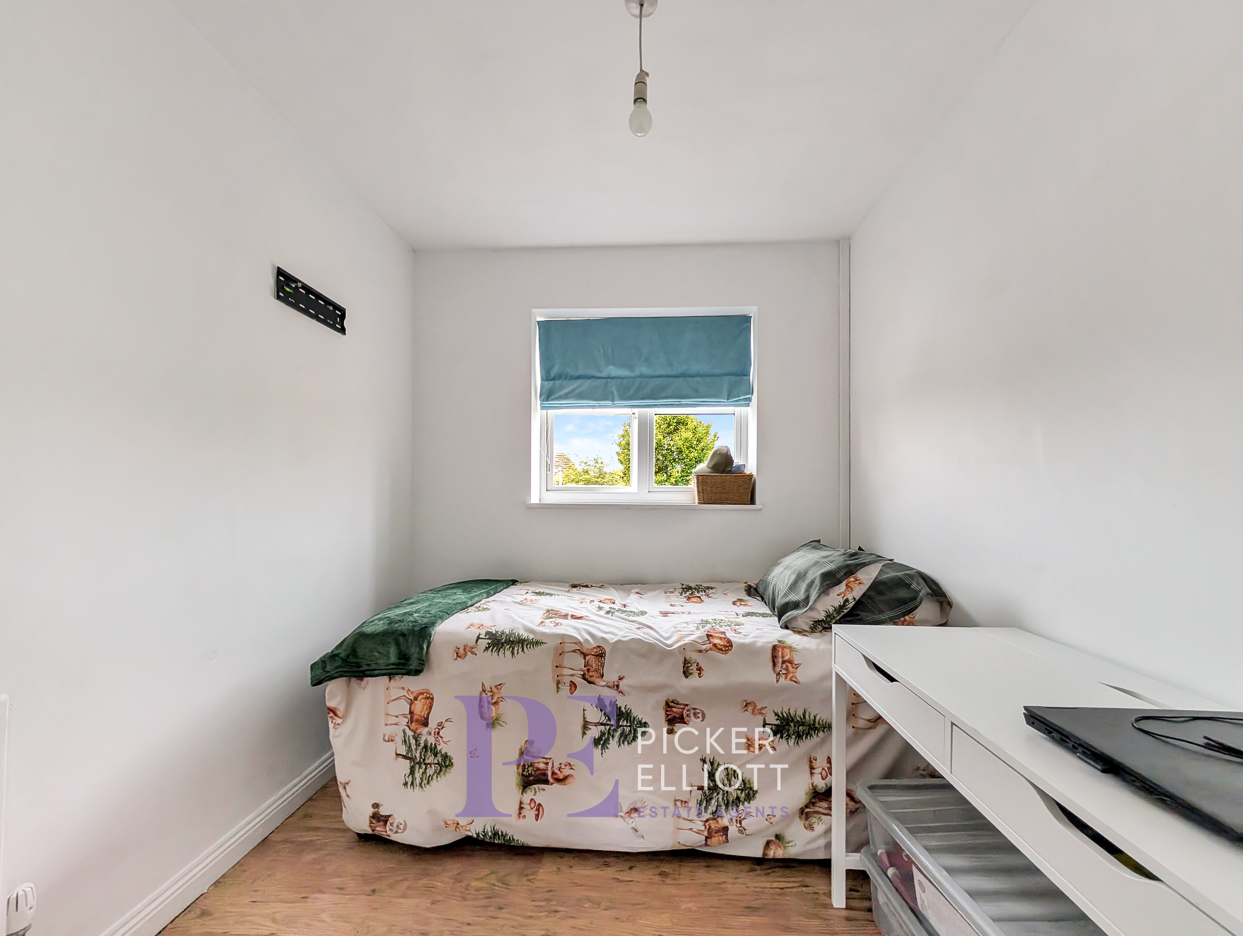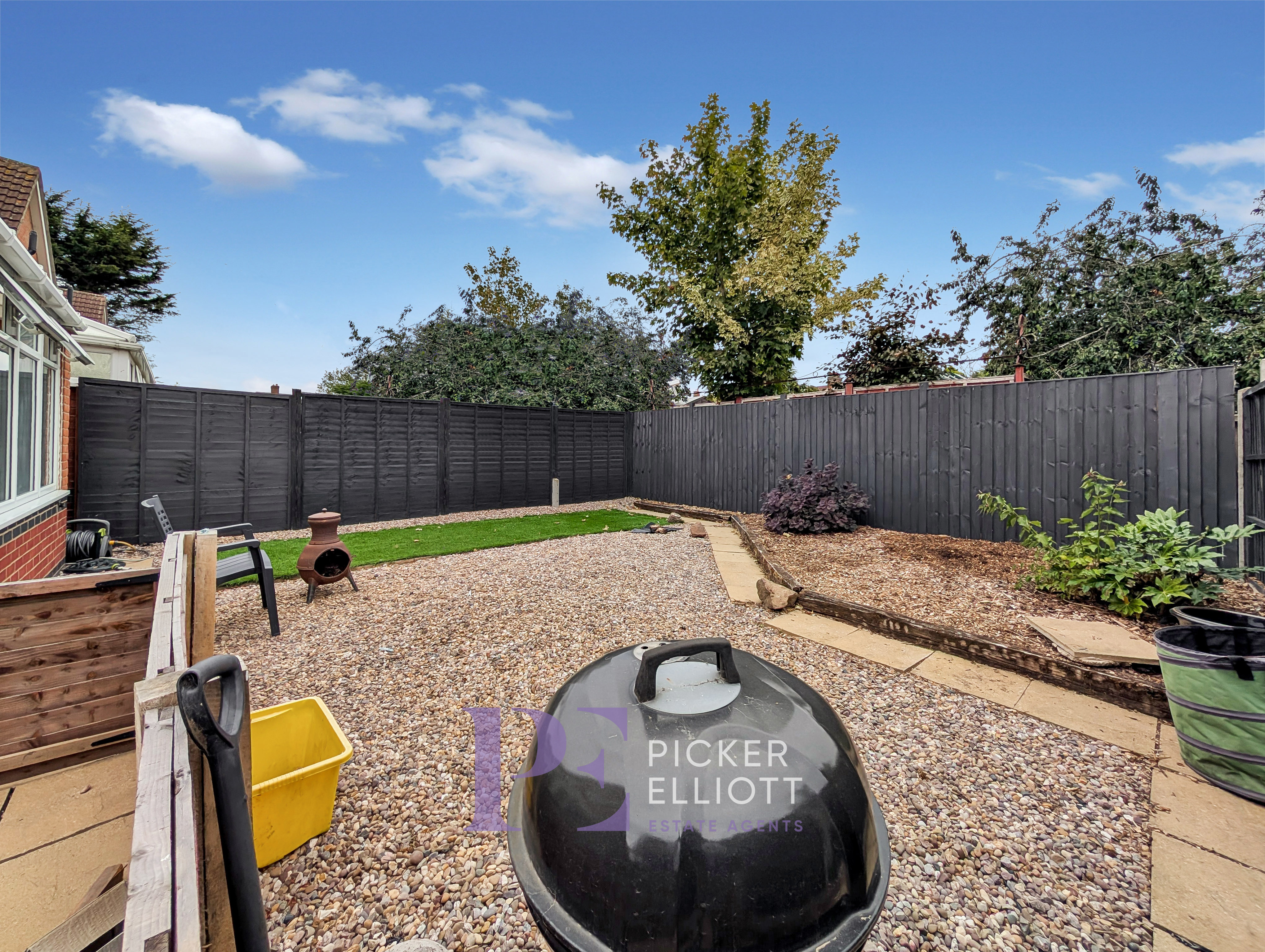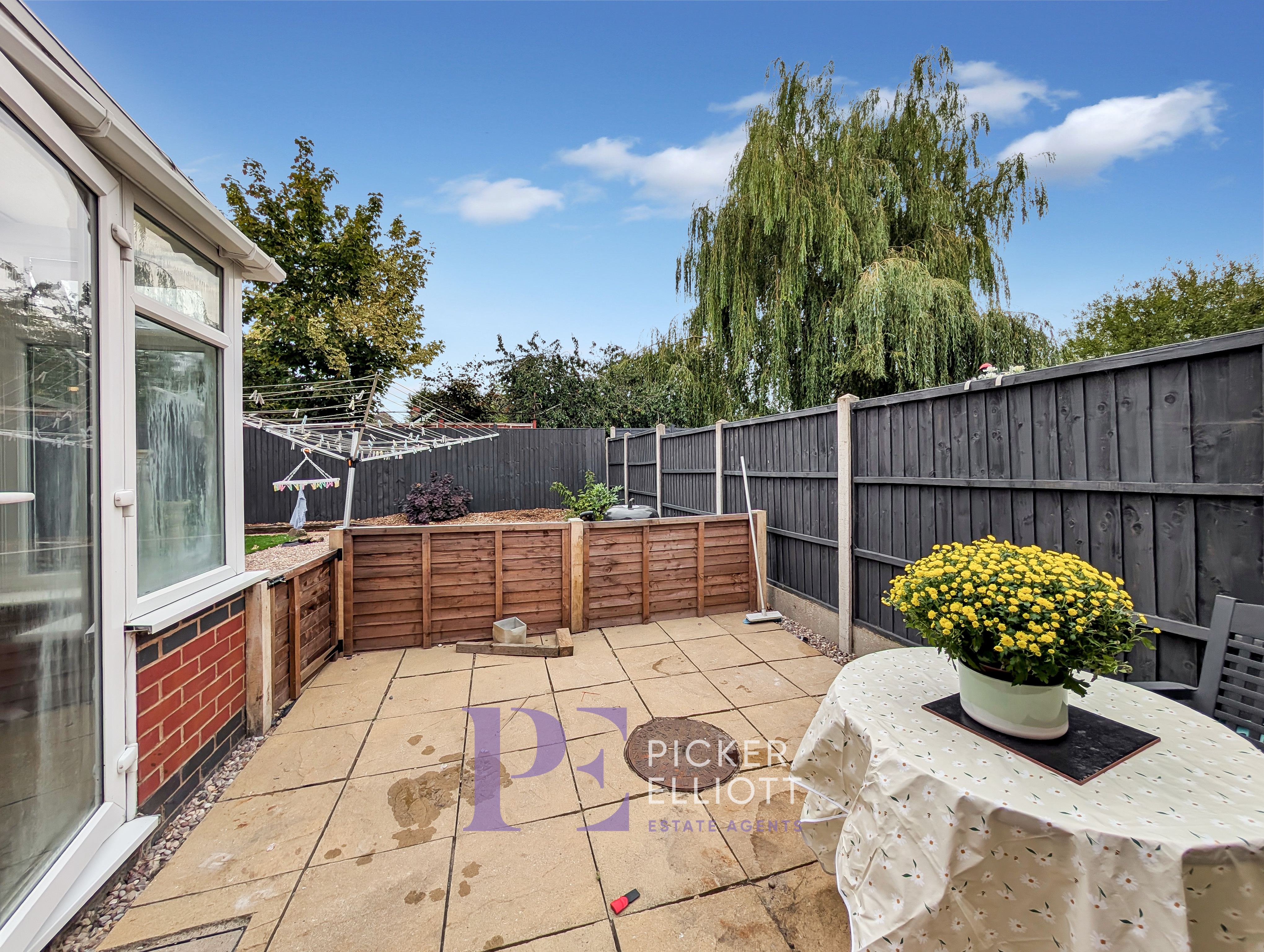 A private rear garden, completely low-maintenance with side access and a metal shed. Timber fencing to all boundaries. To the side of the property is a further gravelled area, with gated access to the front. There is scope to extend the property to the side (STPP).