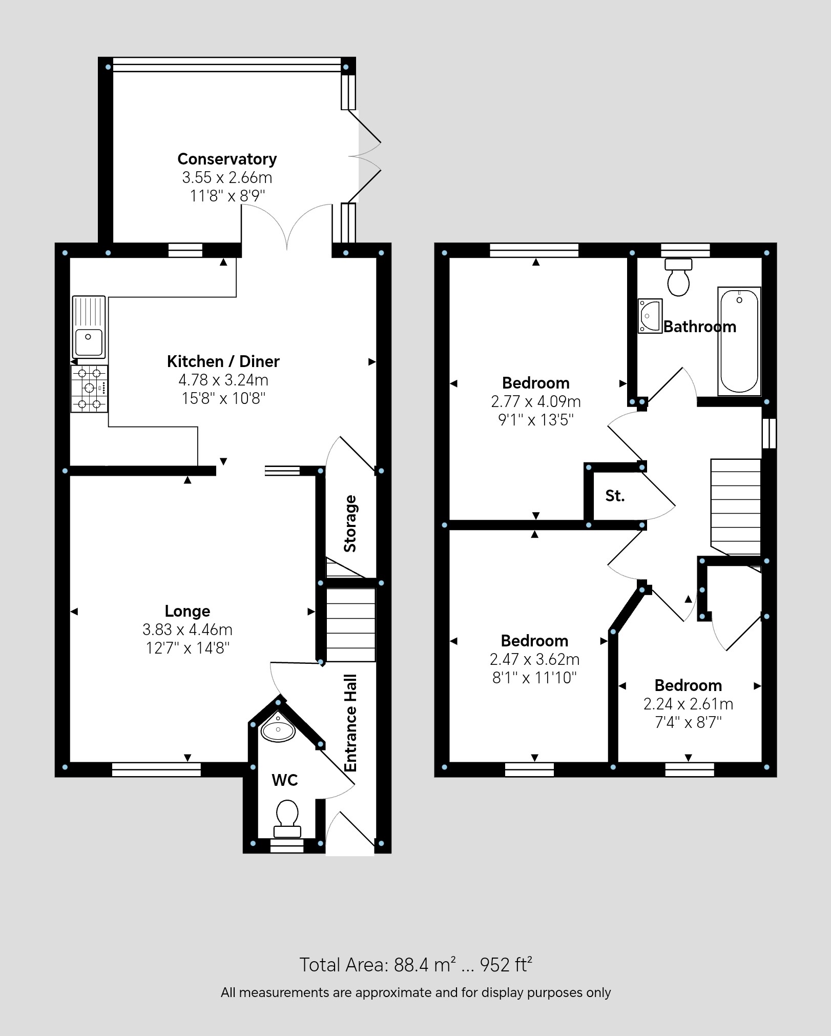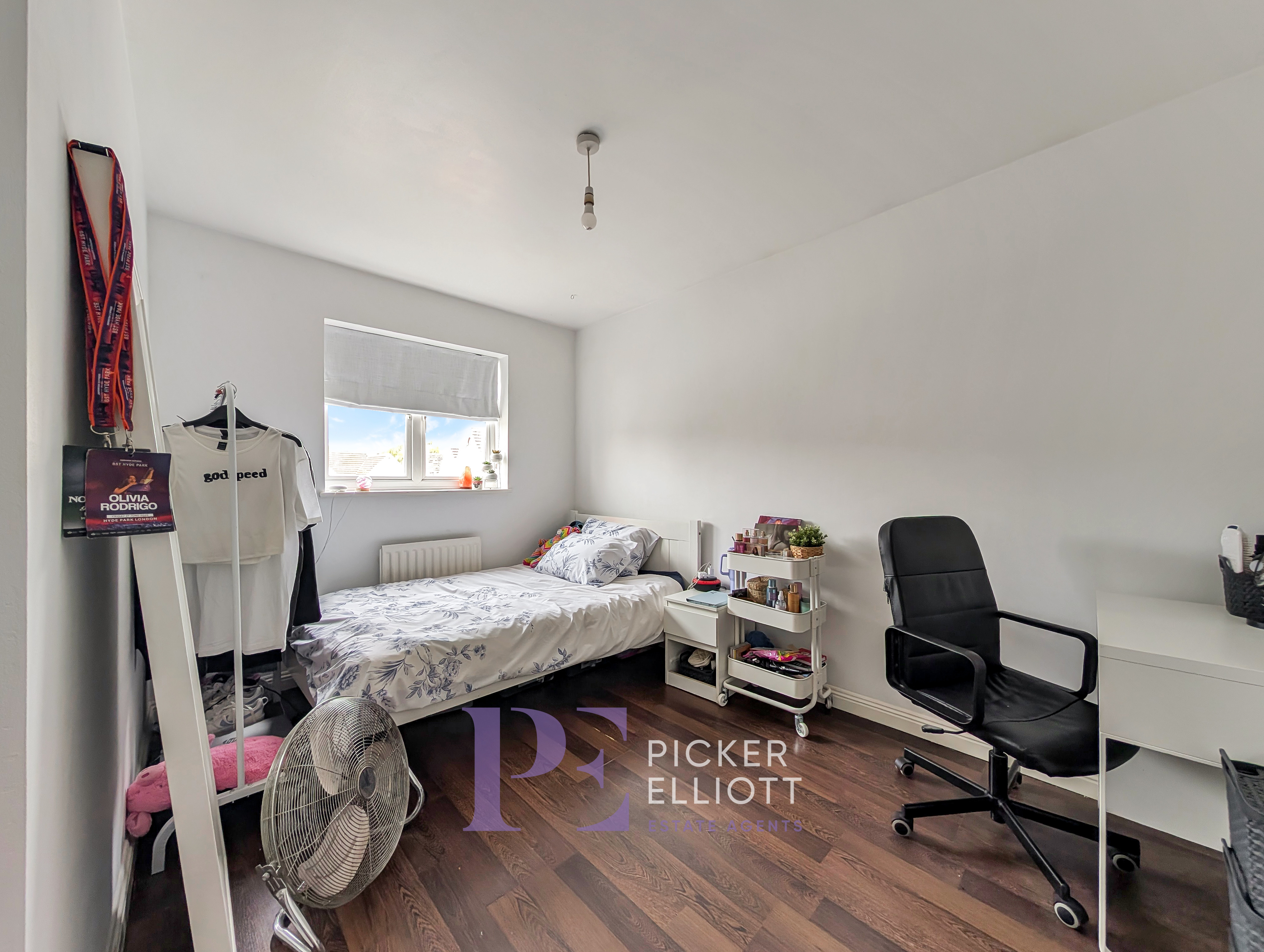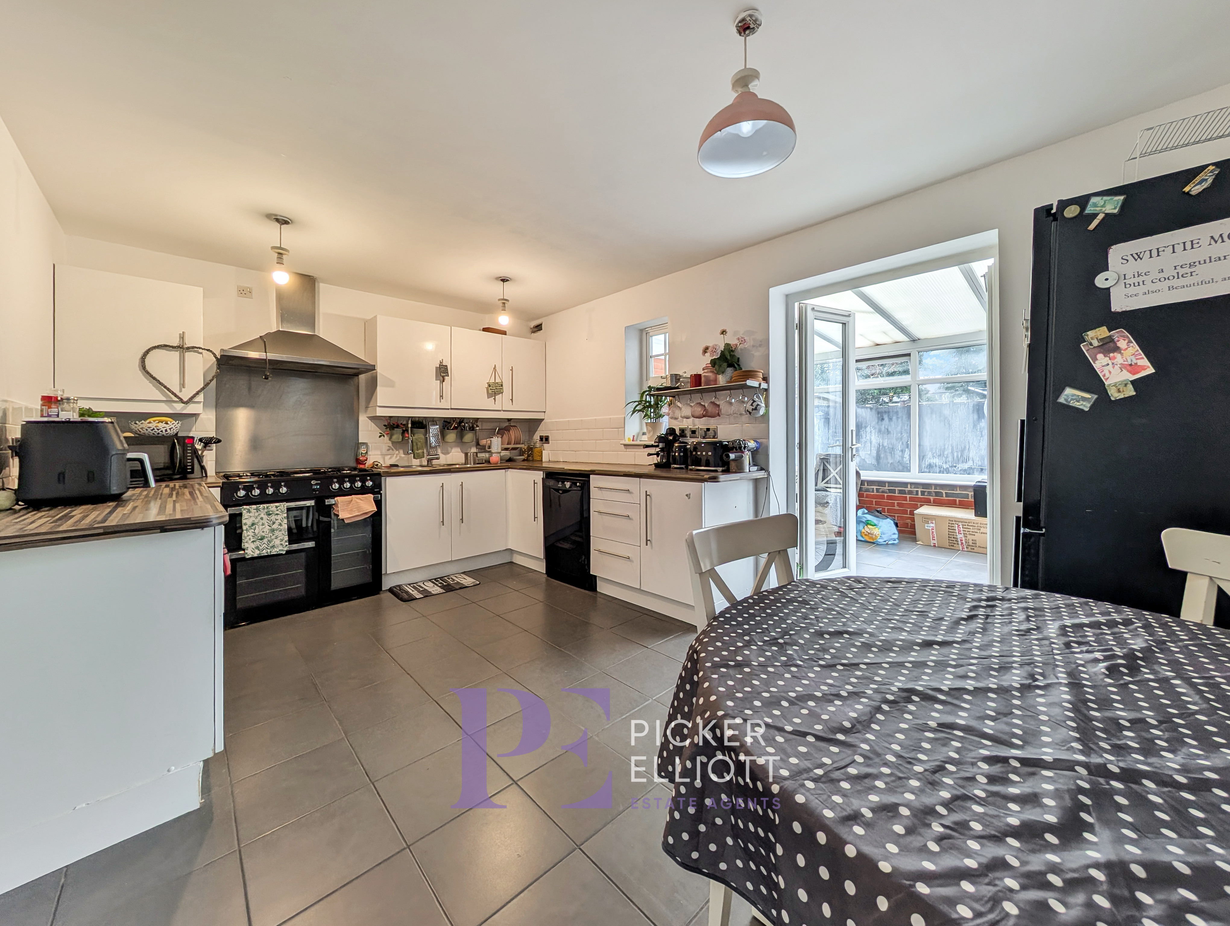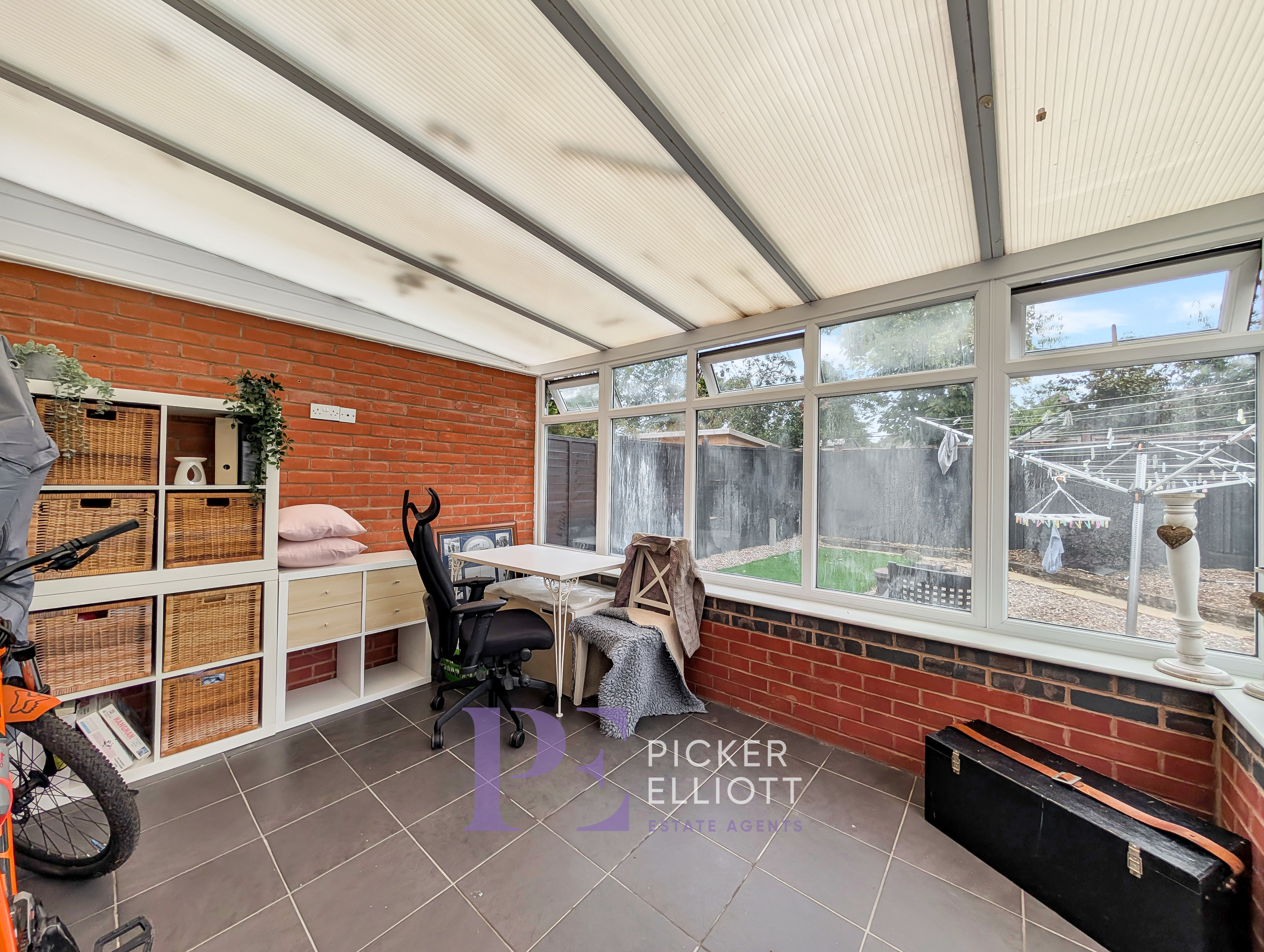 A private rear garden, completely low-maintenance with side access and a metal shed. Timber fencing to all boundaries. To the side of the property is a further gravelled area, with gated access to the front. There is scope to extend the property to the side (STPP).