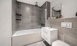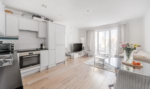 The heart of the apartment is its stunning open-plan living space, where a contemporary kitchen seamlessly flows into a bright and airy lounge-diner. The kitchen has floor and wall units, built-in fridge / freezer, dishwasher, stainless steel sink and drainer, fitting oven , electric hob and extractor over Additional benefits include a secure intercom system, a communal lift for effortless access, and well-maintained shared grounds.