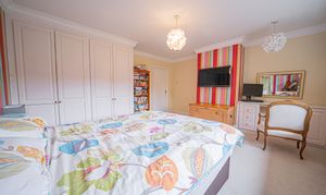 Outside, this property offers a beautifully maintained south-west facing rear garden spread over approximately 0.24 acres. The front of the home presents a substantial driveway capable of accommodating multiple vehicles, leading to a generously sized garage. The property is securely nestled behind a gated entrance - ensuring both privacy and peace of mind for residents.