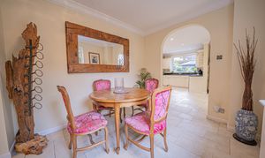 The property boasts an excellent living room adorned with feature fireplaces, alongside a large formal dining room perfect for hosting gatherings. Ascend to the first floor to find three double bedrooms, all offering fitted storage. One bedroom benefits from a generous en-suite, while a family bathroom and separate toilet cater to the remaining bedrooms. The second floor unveils two additional bedrooms, providing versatility to be utilised as a home office or other desired spaces.