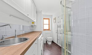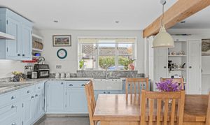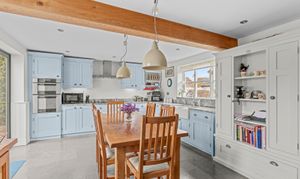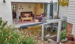 The cottage has been beautifully refurbished in recent years providing a harmonious balance of traditional charm and contemporary style. The light and spacious sitting room is a comfortable space with a flagstone floor and a woodburning stove for those chilly evenings. The family room connects seamlessly with the garden through bi-folds doors opening onto a private terrace. The kitchen/breakfast room is well appointed with a full range of bespoke units, with granite work surfaces, integrated appliances and a ceramic floor with underfloor heating. There is a small lobby off which is a study/bedroom four and along with a utility/shower room.