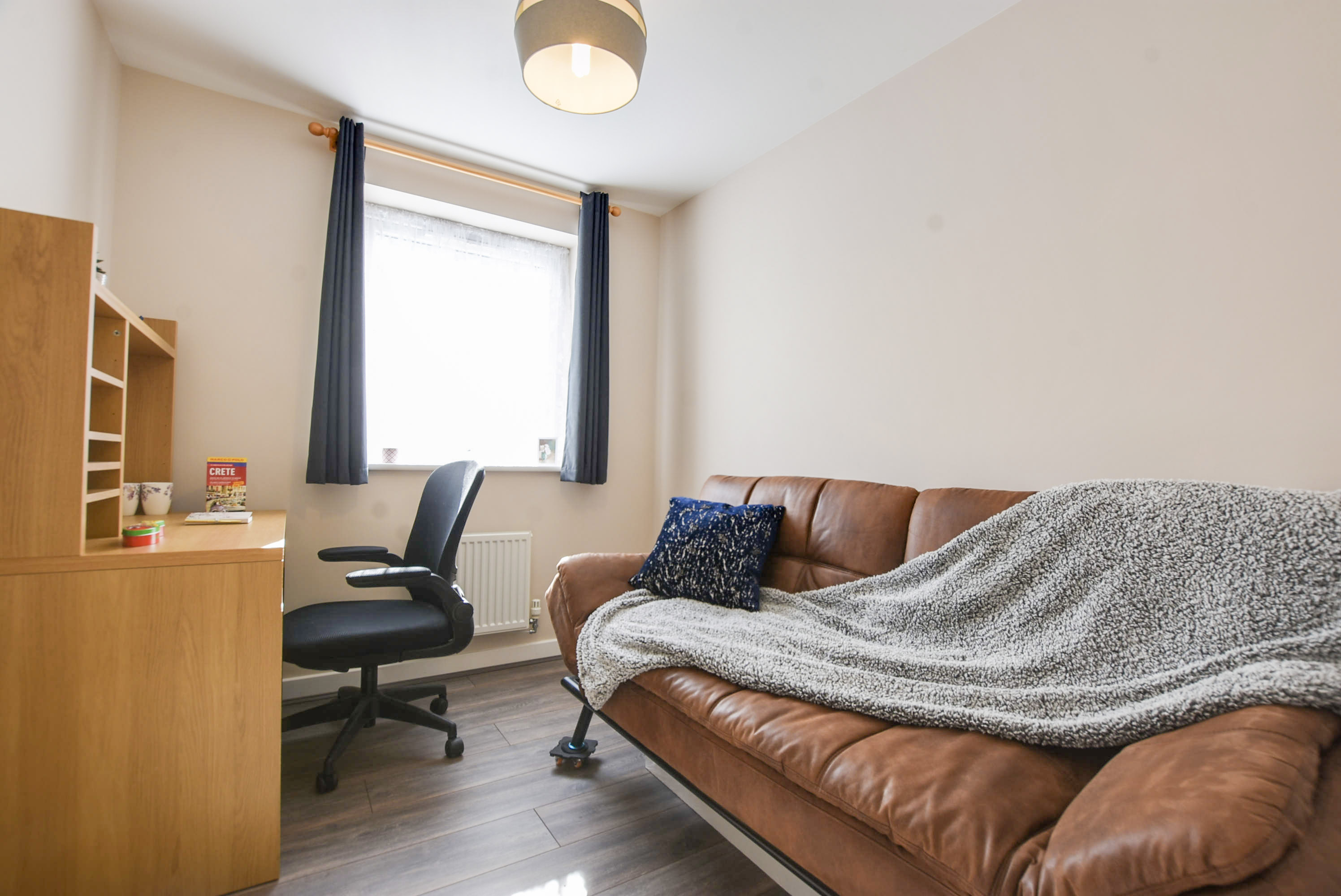 With window to side elevation, grey laminate flooring, radiator. The desk, chair and sofa bed will all be remaining.
