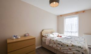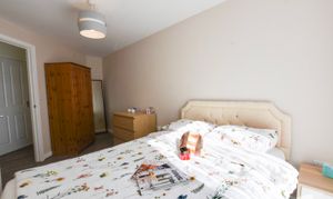 With window to side elevation, grey laminate flooring, radiator. The drawers, bed, wardrobes and mirror will all be remaining.