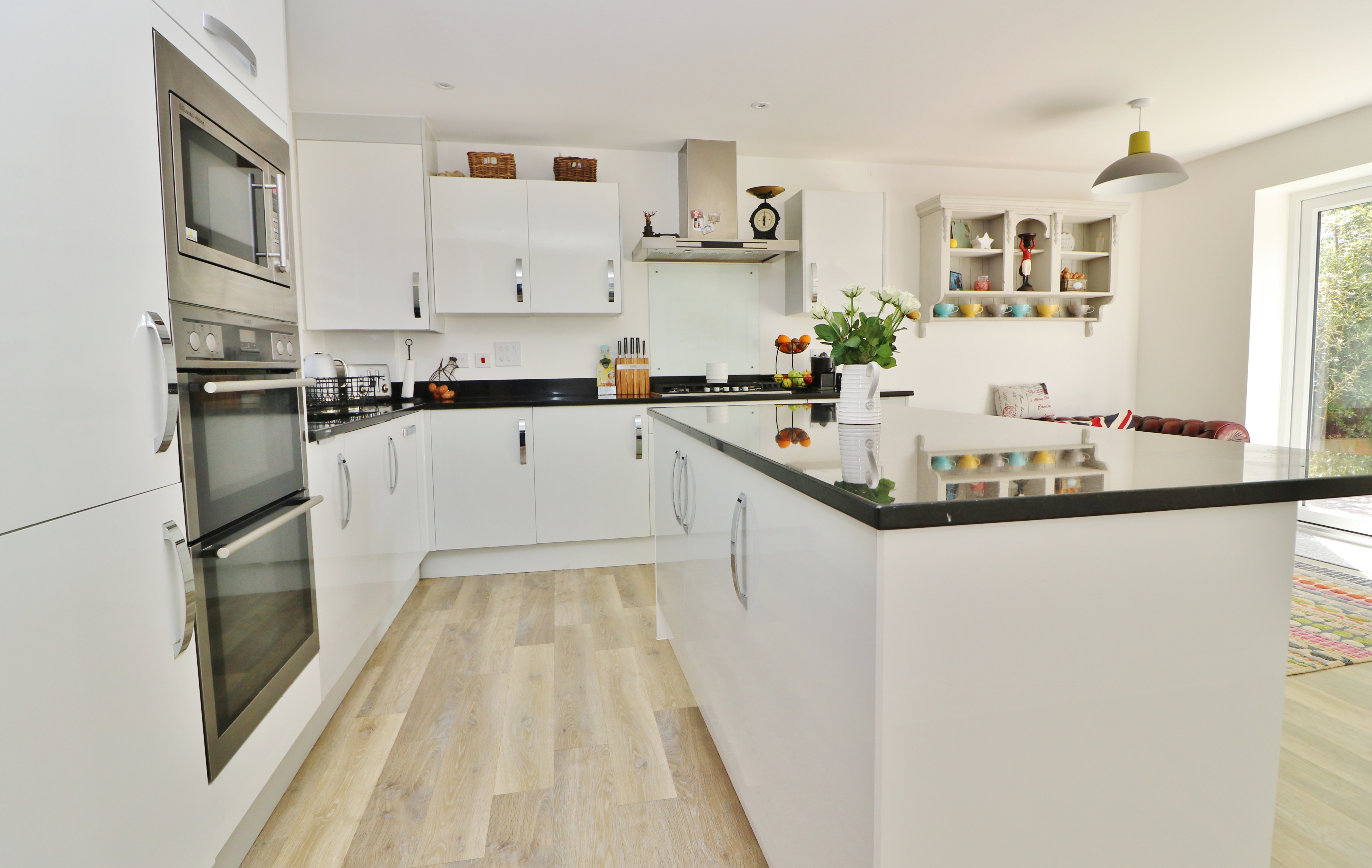 The dual aspect kitchen/breakfast room has been fitted with a modern range of wall and base units with a central island incorporating a breakfast bar. Integrated appliances include a double oven, combi-microwave oven, five ring gas hob with extractor over, fridge/freezer and dishwasher. French doors from the breakfast area open out to the garden.