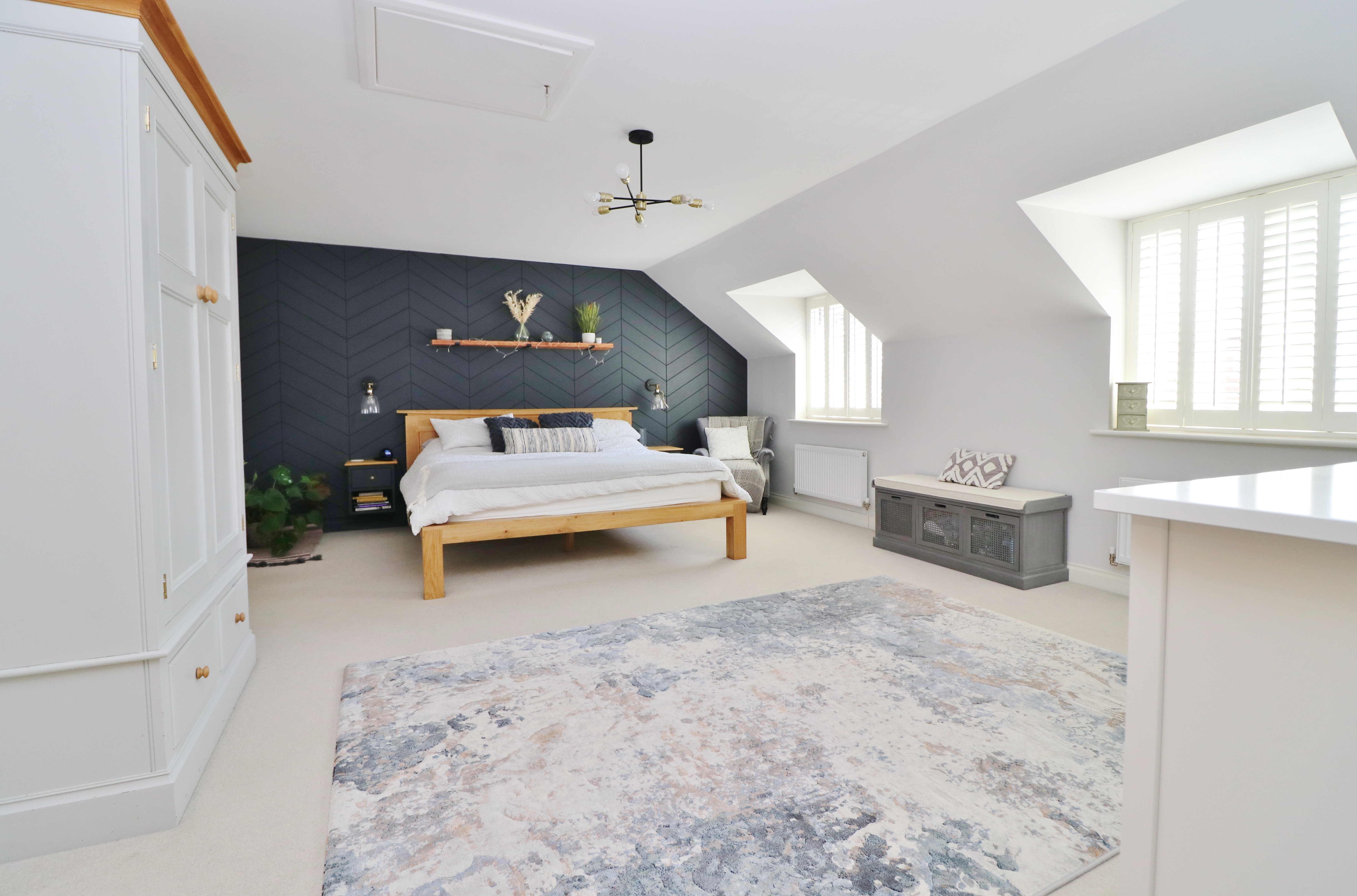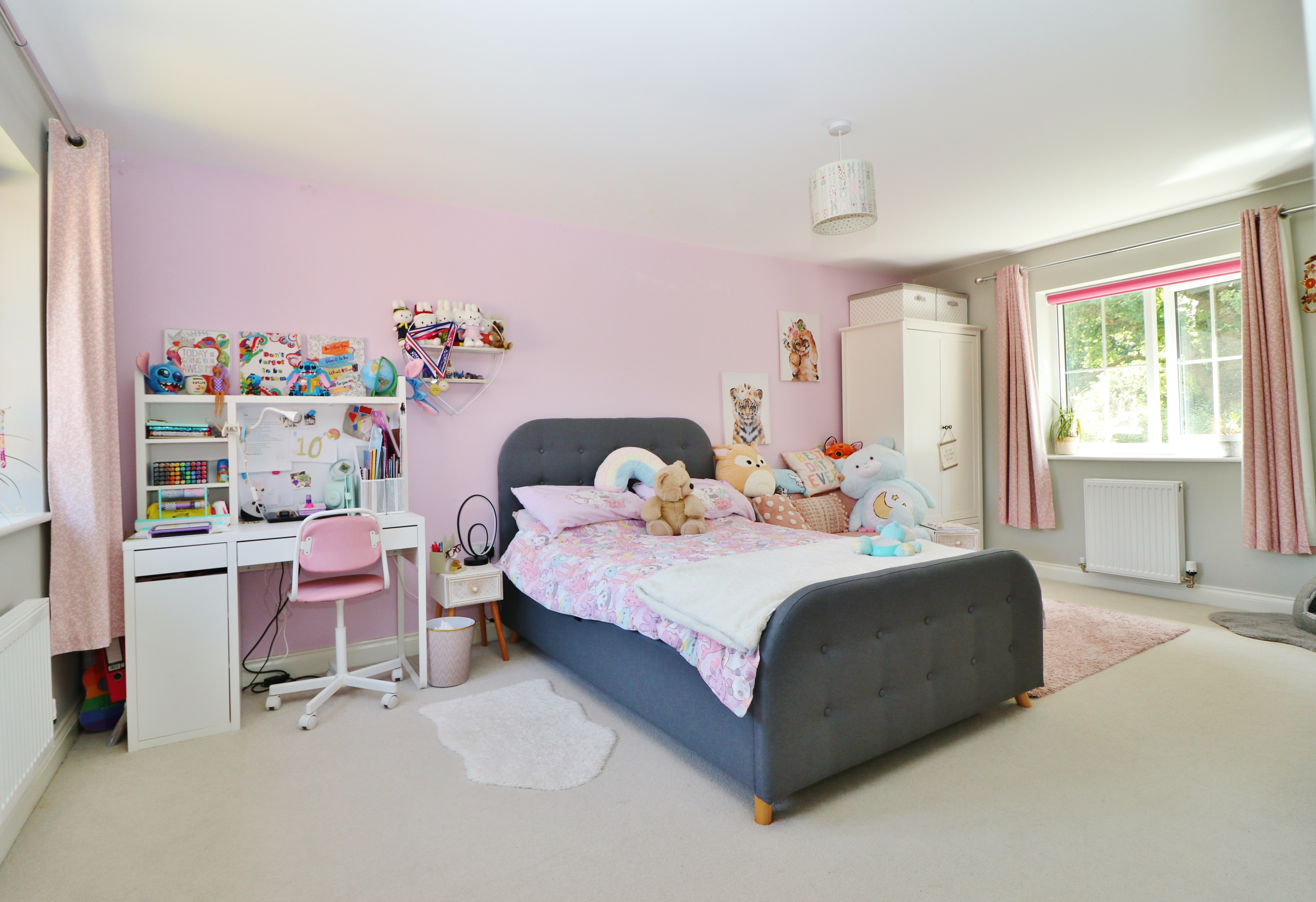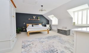 On the first floor, the wonderful, light master bedroom has a walk-in wardrobe, two windows to the front and an en-suite shower room with a window to the rear.
