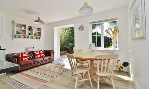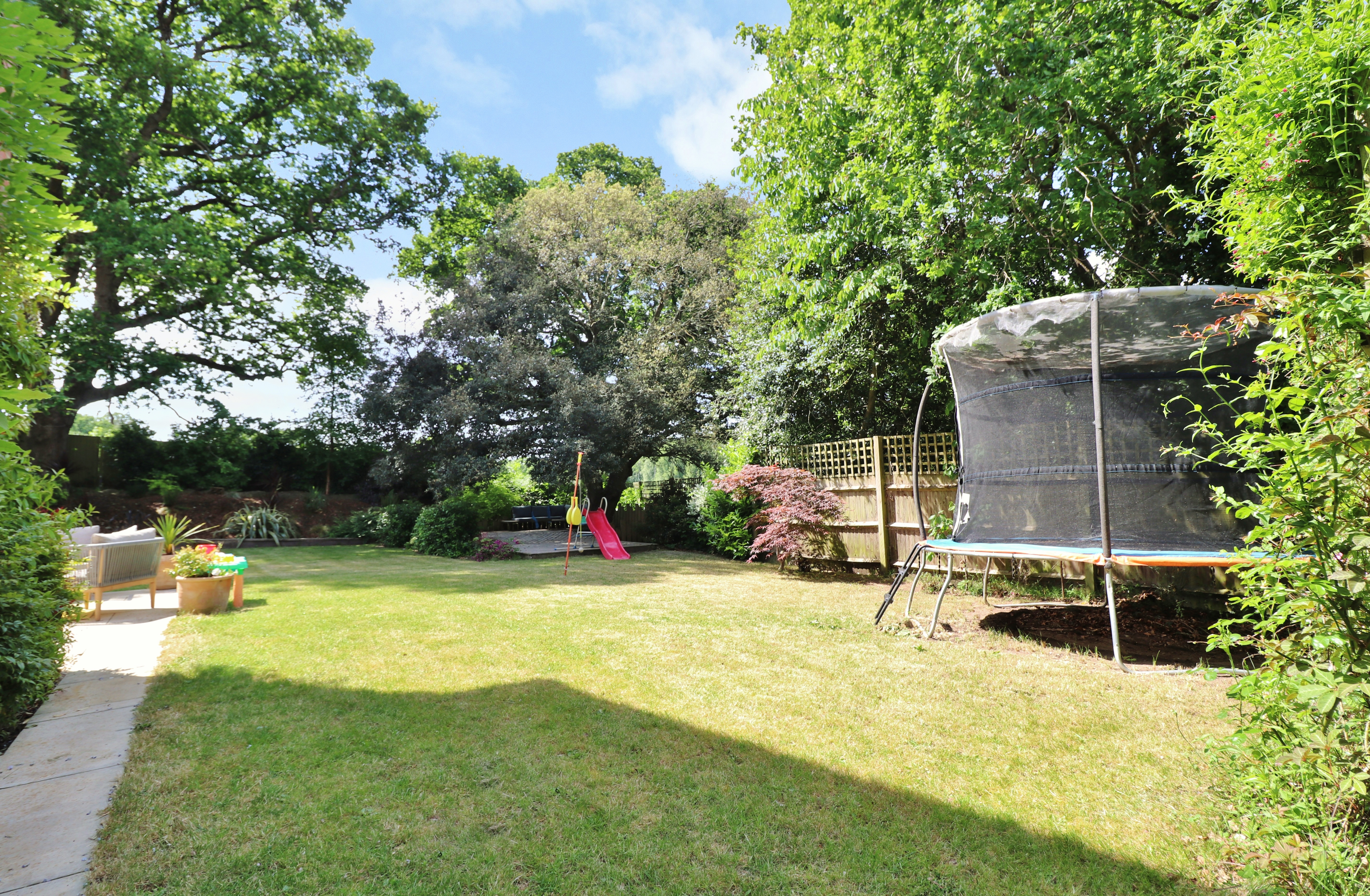 Having been thoughtfully landscaped by the current owners, the garden offers a large, paved seating area, perfect for outdoor entertaining, leaving the rest of the garden laid to lawn with mature tree borders, offering a great degree of privacy.