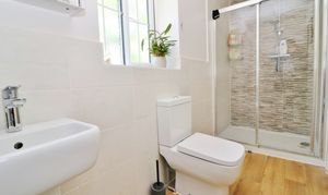 The guest bedroom also faces the front and has an en-suite shower room, with the remaining three bedrooms all overlooking the rear garden, one of which benefits from a built-in wardrobe.