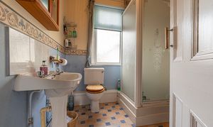 To the first floor we have three bedrooms, two of which are double in size - with one benefitting from a fitted wardrobe, while the other enjoys bay windows that light up the room. The third bedroom is a cozy single, and could work well as a home office, nursery or walk in wardrobe, while the family bathroom is located from the hallway with a toilet and shower cubicle.