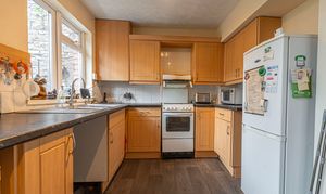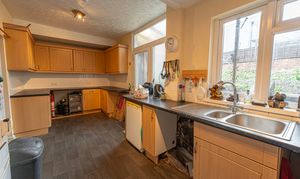 On the ground floor we have two spacious reception rooms, with the front facing dining room enjoying glorious bay windows that flood the room with natural light. The second reception room boasts an impressive open plan design, offering a flexible space for various furniture layouts, and a great hub for relaxing and entertaining guests. The large living room features an open walkway to connects seamlessly to the kitchen at the rear of the house, which is well equipped with plenty of counter space, room for numerous appliances, and an abundance of fitted cupboards for easy storage options.