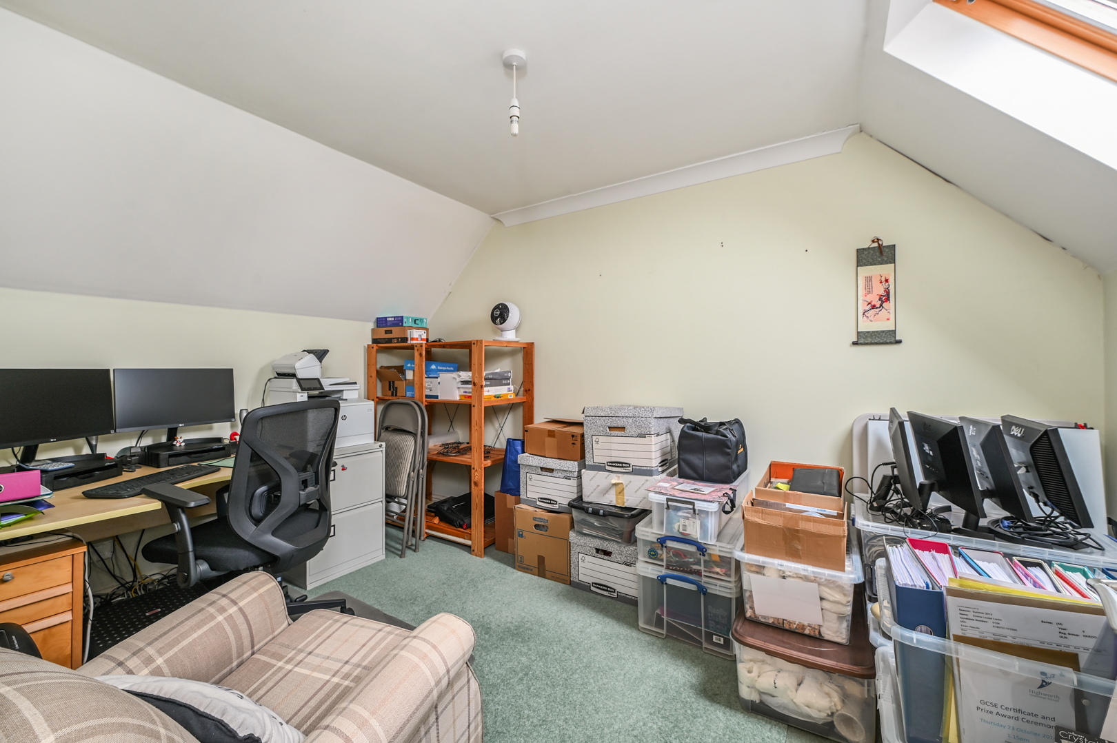 Doors to both rooms, roof window, loft access and fitted carpet to the stairs and landing.