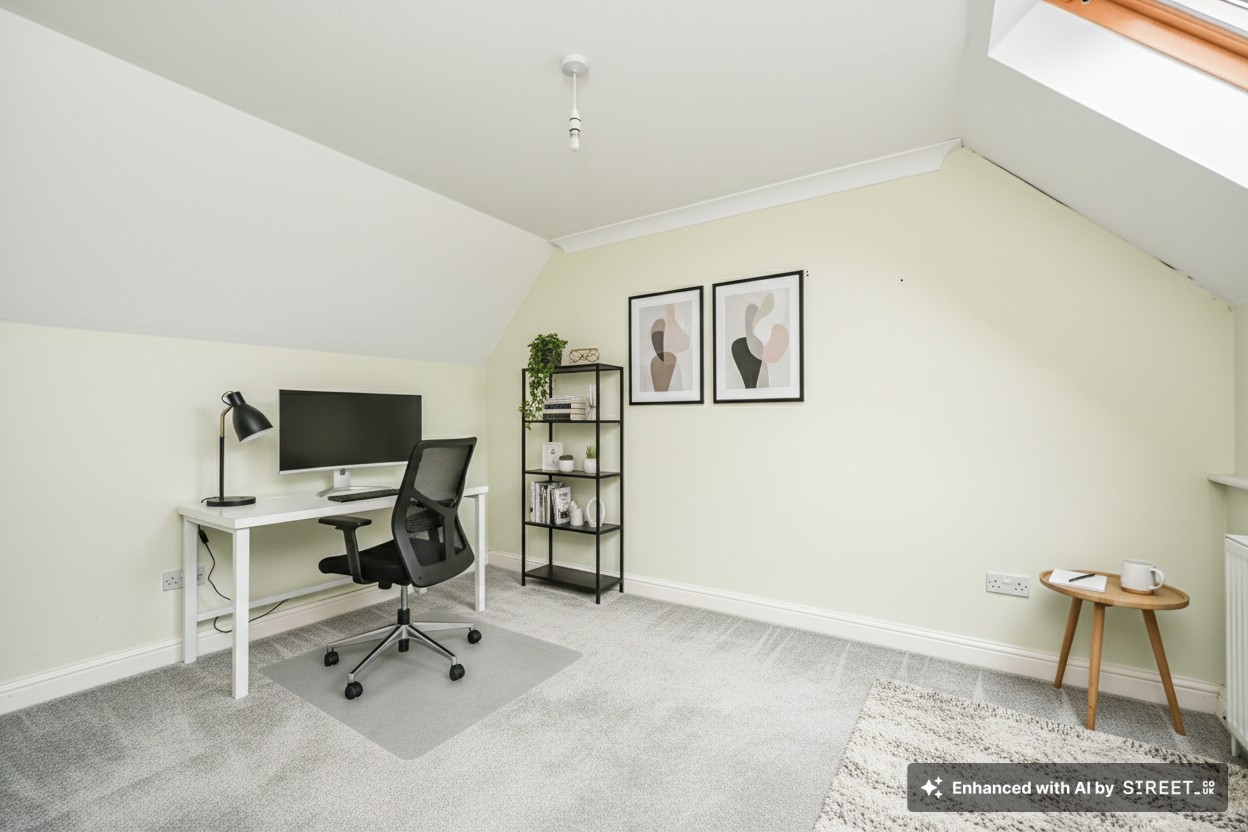 The first floor provides three well-proportioned double bedrooms, all with fitted bedroom furniture, offering excellent storage and comfort for children or guests, with the main bedroom enjoying the added benefit of an en-suite shower room. A separate dressing room offers further flexibility, ideal as a nursery, additional storage space or a future study. A modern family bathroom rounds off the accommodation on this floor. The top floor adds another large double bedroom alongside a dedicated home study, an increasingly valuable feature for those working from home or seeking a quiet, separate workspace away from the main living areas.