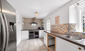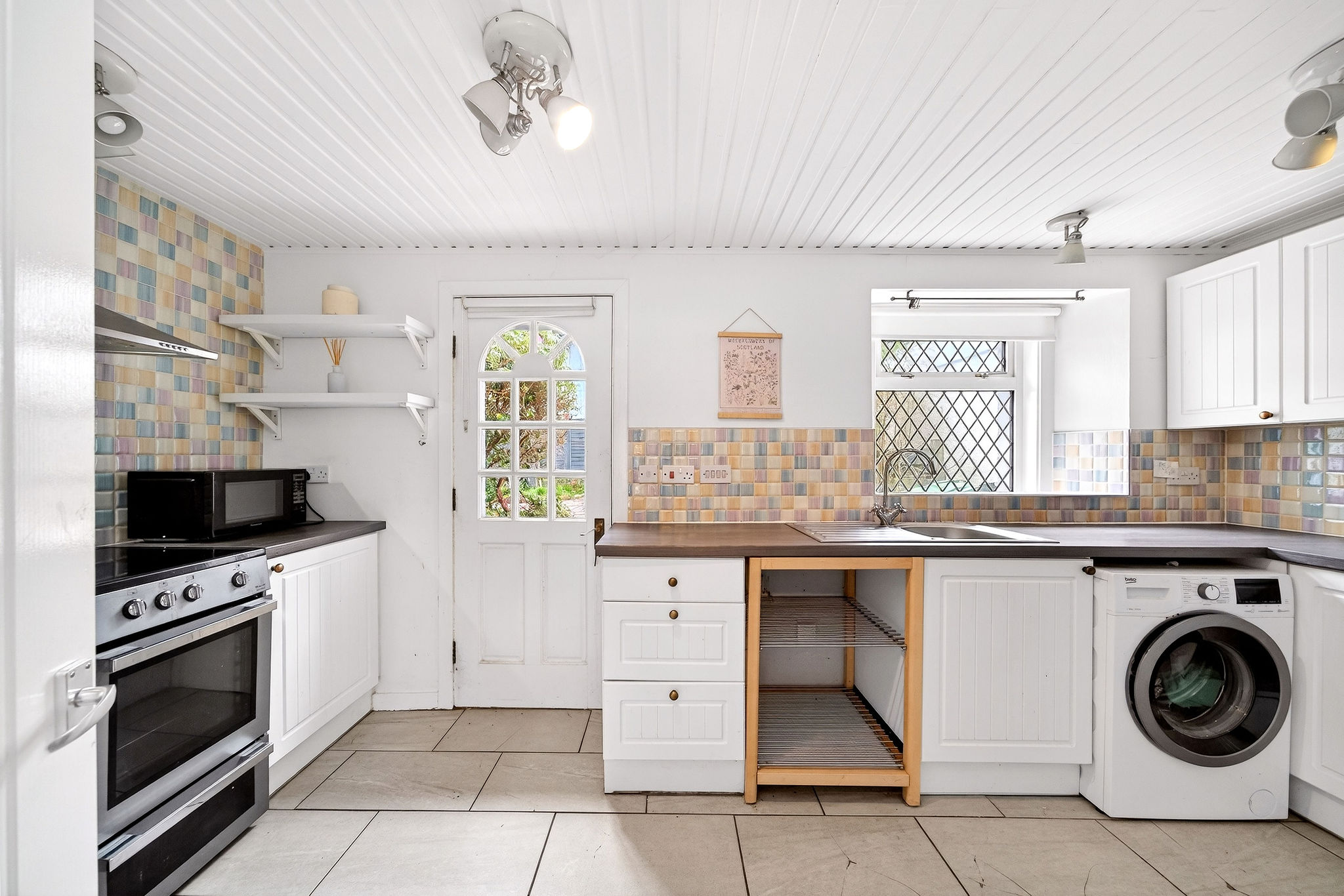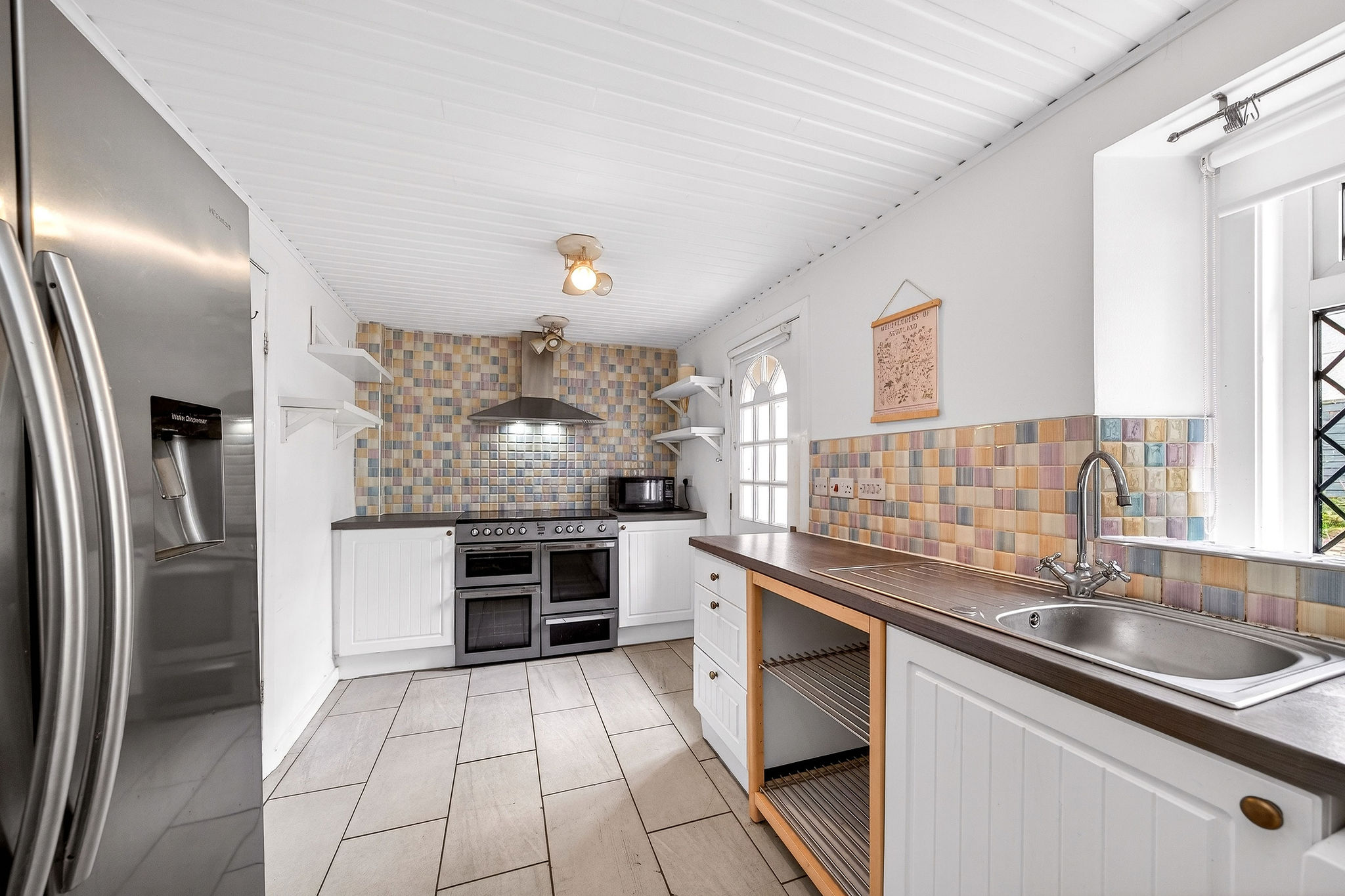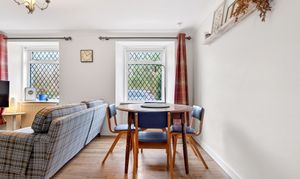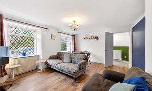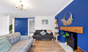 The accommodation is both flexible and practical, comprising entrance hall, bright lounge diner with feature fireplace and lattice style windows, fitted kitchen with range cooker and appliances and direct access to the rear garden, generous ground floor double bedroom with en-suite shower room and a modern family bathroom.