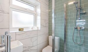 The modern kitchen comes fully equipped with integrated appliances, making meal prep a breeze, and there is plenty of storage for all your culinary needs. Each bedroom is generously sized, and the property features en-suite bathrooms complete with modern walk-in showers, providing both comfort and convenience for everyone. The staircase is a real feature point, with a glass balustrade that adds to the light and airy feel of the property. Practicality is well considered here, with off-road parking for one car (ideal for busy households) and an EPC rating of C (78), so you can enjoy energy efficiency as well as style. The council tax band is B, which helps keep running costs manageable.