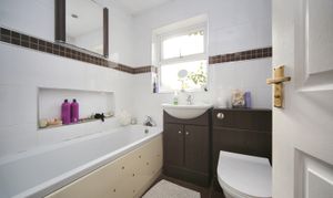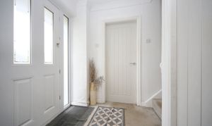 The spacious entrance hall leads to a convenient ground floor WC and a large, bright lounge featuring three windows that flood the room with natural light. The kitchen diner offers ample space for family meals and entertaining, with an adjoining conservatory providing a lovely view of the south facing rear garden. A separate utility room adds to the practicality of the layout.
