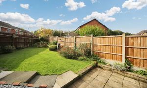 Upstairs, the master bedroom includes fitted wardrobes and a modern en-suite shower room. Two further bedrooms and a family bathroom complete the first floor. Located opposite a securely fenced communal play field, this property is ideal for families looking for space, comfort and convenience.