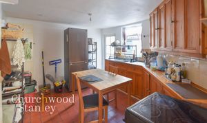 The living room to the front is bright and welcoming, with a deep-set bay window bringing in natural light. It flows directly into the kitchen, which has been laid out with modern use in mind while retaining its traditional proportions. Beneath your feet, a cellar adds further versatility.
