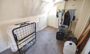 The fourth bedroom adjoins the second-floor double, making it a natural choice for a dressing room, nursery, or private study. With its sloping ceilings, exposed timbers, and a window drawing in daylight, it has all the charm of a traditional cottage space. Built-in eaves storage adds practicality, while its position off the main bedroom enhances its flexibility as an extension of the larger room next door.