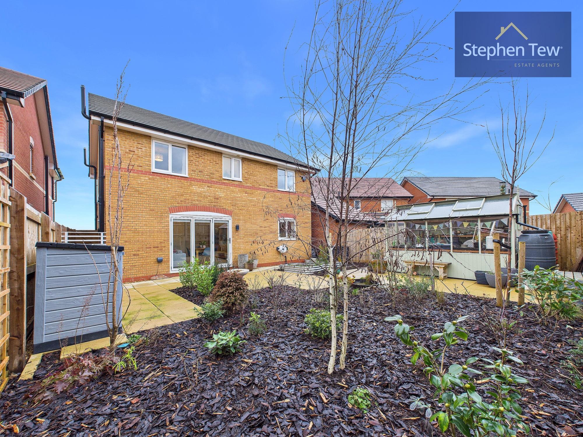 Presenting an exceptional opportunity to acquire a beautifully presented, move-in ready four bedroom detached house, built in 2024 and located on a quiet residential estate, this impressive home offers generous proportions, modern finishes and stunning views across open fields. The property welcomes you with a spacious entrance hall featuring Amtico flooring throughout the ground floor, setting the tone for the high standard of finish found throughout. The heart of the home is an expansive open plan kitchen, dining and living area, designed for both family life and entertaining, and benefitting from abundant natural light. The upgraded kitchen is a true highlight, complete with premium Neff appliances, integrated features, quartz worktops and ample storage. The living and dining spaces flow seamlessly, creating a sociable environment for gatherings and every-day living. Upstairs, the master bedroom provides a tranquil retreat, boasting built-in wardrobes and a contemporary en suite shower room for added privacy and convenience. Three further double bedrooms all feature built-in wardrobes, ensuring plentiful storage for the whole family. The family bathroom is finished to a high standard, complementing the property’s overall sense of quality and style. Practicality has been carefully considered, with dual zone heating for year-round comfort, an advanced alarm system for peace of mind and an EV charger within the large integral garage with electric door, catering to modern needs. The substantial driveway accommodates multiple vehicles, offering off street parking for residents and guests alike. The property’s thoughtful layout and attention to detail are evident throughout, from the stylish finishes to the integrated appliances and generous storage solutions. This home is ideally suited to those seeking a contemporary lifestyle in a peaceful setting, with the added benefit of picturesque views and a welcoming neighbourhood. With its blend of space, style and functionality, this four bedroom detached property represents a rare opportunity to secure a high specification, ready to move into home in a sought after location. Early viewing is highly recommended to fully appreciate all that this outstanding property has to offer.